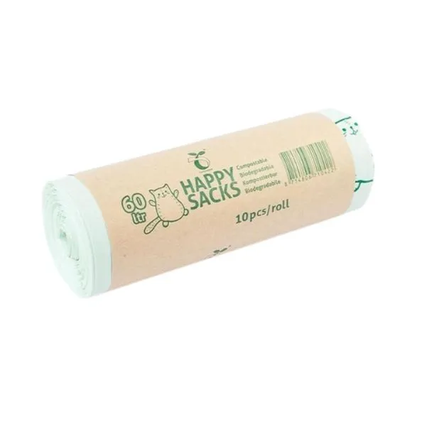 De milieuvriendelijke biozakken van Happy Sacks zijn gemaakt van bioplastic en zijn ideaal om een schone gft-bak te behouden. De afbreekbare vuilniszakken zijn milieuvriendelijk en composteerbaar volgens de Europese norm EN-13432 / 7PO135 en dragen het Kiemplantlogo (NL), OK Compost keurmerk (BE) en Vincotte keurmerk. Happy Sacks GFT-afvalzakken kunnen met inhoud gewoon in de groene gft-container achtergelaten worden, waarna de zak zich vanzelf zal composteren. Happy Sacks worden gemaakt vannatuurlijke materialen zoals; zetmeel, aardappels, suikerriet en mais.