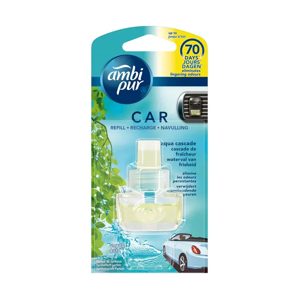 Geurverspreider en navulling. Bevestiging met clip op ventilatierooster. Waterfall.