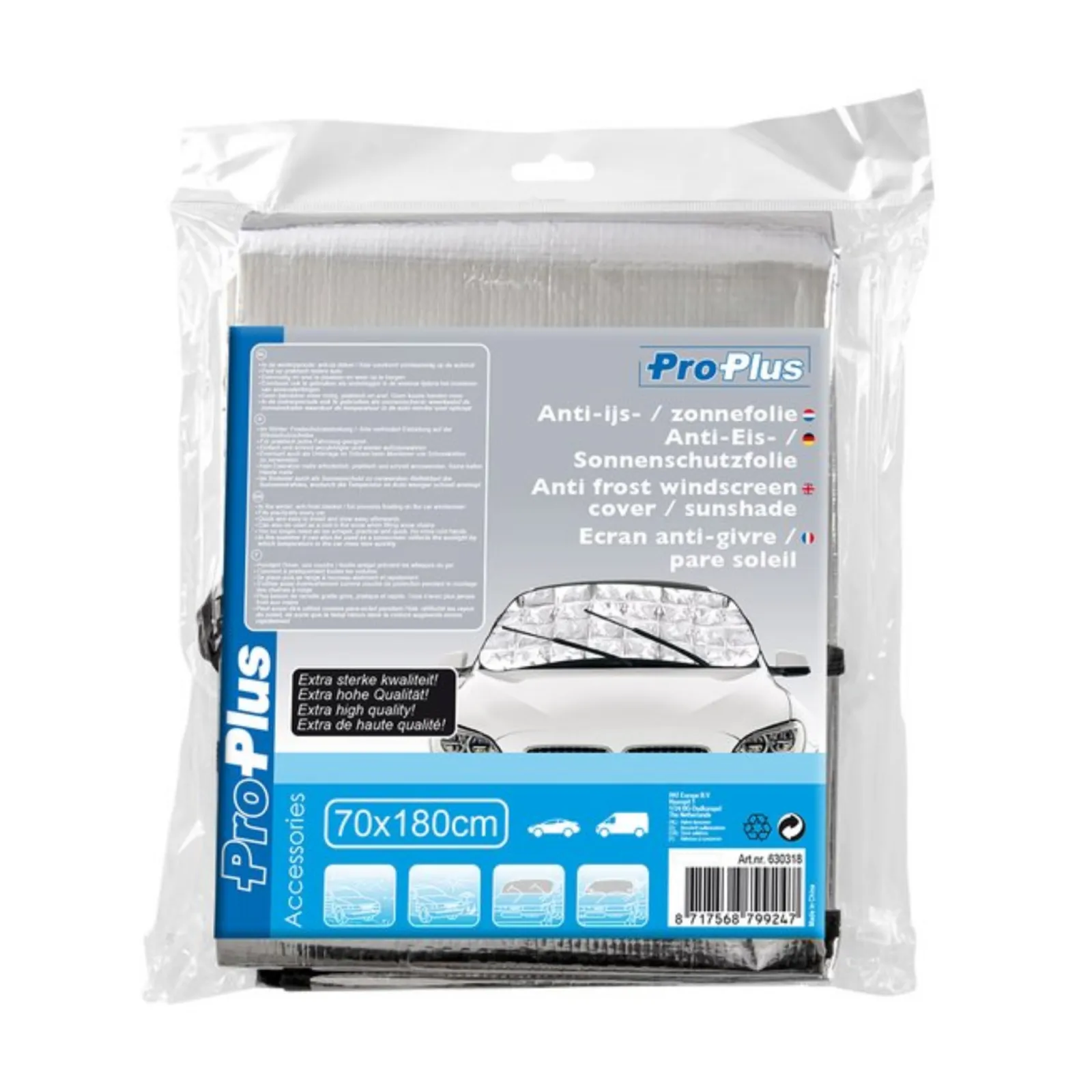 De ProPlus anti-ijs/zonnefolie deken is zo’n accessoire waar je het hele jaar plezier van hebt. In de winter beschermt ’ie je voorruit tegen vorst, sneeuw en ijs. Dat betekent: geen gekrab meer in de ochtend, gewoon instappen en wegrijden. De folie is geschikt voor vrijwel elke auto en ligt stevig op zijn plek. Zodra de zon zich weer laat zien, komt deze deken opnieuw van pas. De reflecterende laag kaatst zonlicht terug, waardoor de temperatuur in je auto minder snel oploopt. Fijn voor jezelf, maar ook beter voor je interieur. Geen loeihete stoelen of stuur meer als je instapt.