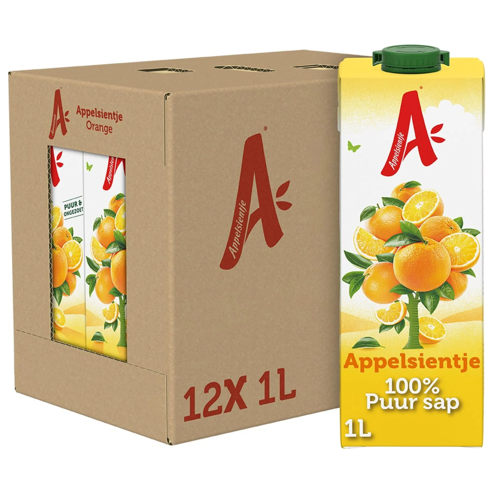 De pure sappen van Appelsientje smaken altijd. Het fruit wordt speciaal voor Appelsientje geselecteerd en geperst. De zorgvuldige behandeling zorgt ervoor dat je altijd kunt vertrouwen op de beste kwaliteit. De pure sappen zijn ongezoet en bevatten uitsluitend de van nature in het fruit aanwezige fruitsuikers. Lekker puur fruit. Verpakt in een pak van 1 liter. Er zitten 12 pakken à 1 liter in een tray.