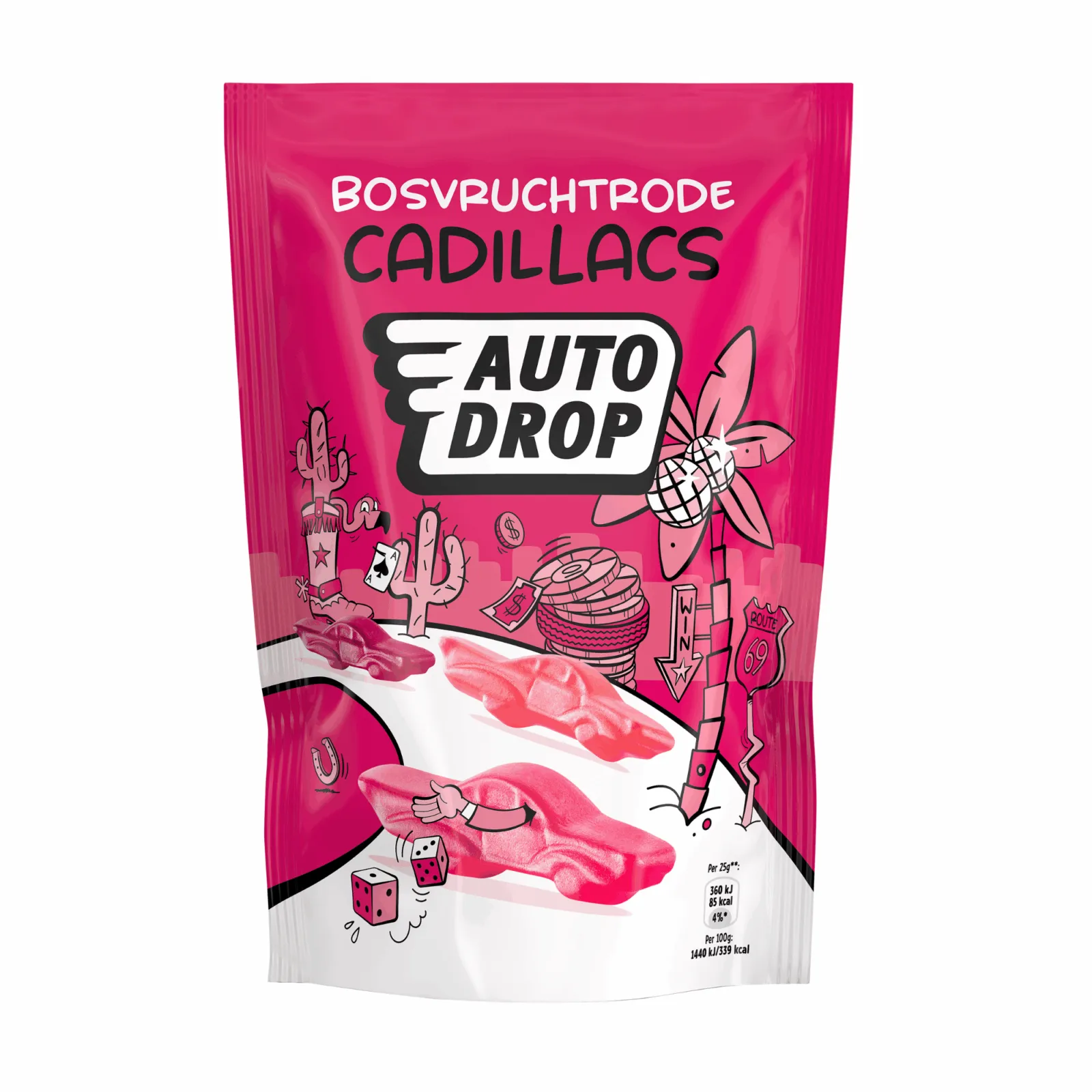 Bij Compliment.nl koop je voordelig de Autodrop Cadillac, een klassieke smaak die al vele kilometers heeft afgelegd in de harten van snoep liefhebbers. Deze rode Cadillacs zijn doordrenkt met de zoete smaak van bosvruchten, en eenmaal begonnen kun je haast niet meer stoppen met genieten. Gelukkig is de impact op het milieu minimaal, dankzij natuurlijke smaakstoffen en de afwezigheid van lactose en gluten, waardoor ze geschikt zijn voor elke milieuzone. Dus waar wacht je nog op? Stap in, raampje open, en geniet van een ritje met Autodrop Cadillac!