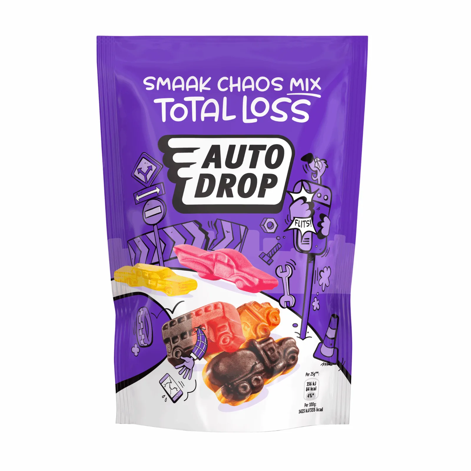 De Total Loss mixzak van Autodrop is een van de eerste smaken van Autodrop. De Autodrop Mixzak Total Loss heeft dus al heel wat Autodrop liefhebbers weten te bekoren. Met een selectie van 16 packs van 150 gram per stuk, is deze mixzak perfect voor elke gelegenheid. De unieke combinatie van verschillende smaken zorgt telkens weer voor een smaakexplosie in je mond. Of je nu van zoet of zuur houdt, deze mix heeft voor ieder wat wils. Elke hap is een avontuur op zich, waardoor je moeilijk kunt stoppen met genieten. Gelukkig zijn de Autodrop Total Loss mixzakken voorzien van natuurlijke smaakstoffen en zijn ze vrij van lactose en gluten, waardoor ze geschikt zijn voor elke milieuzone. Dus waar wacht je nog op? Autodrop kopen! Raampje open en cruisen maar!