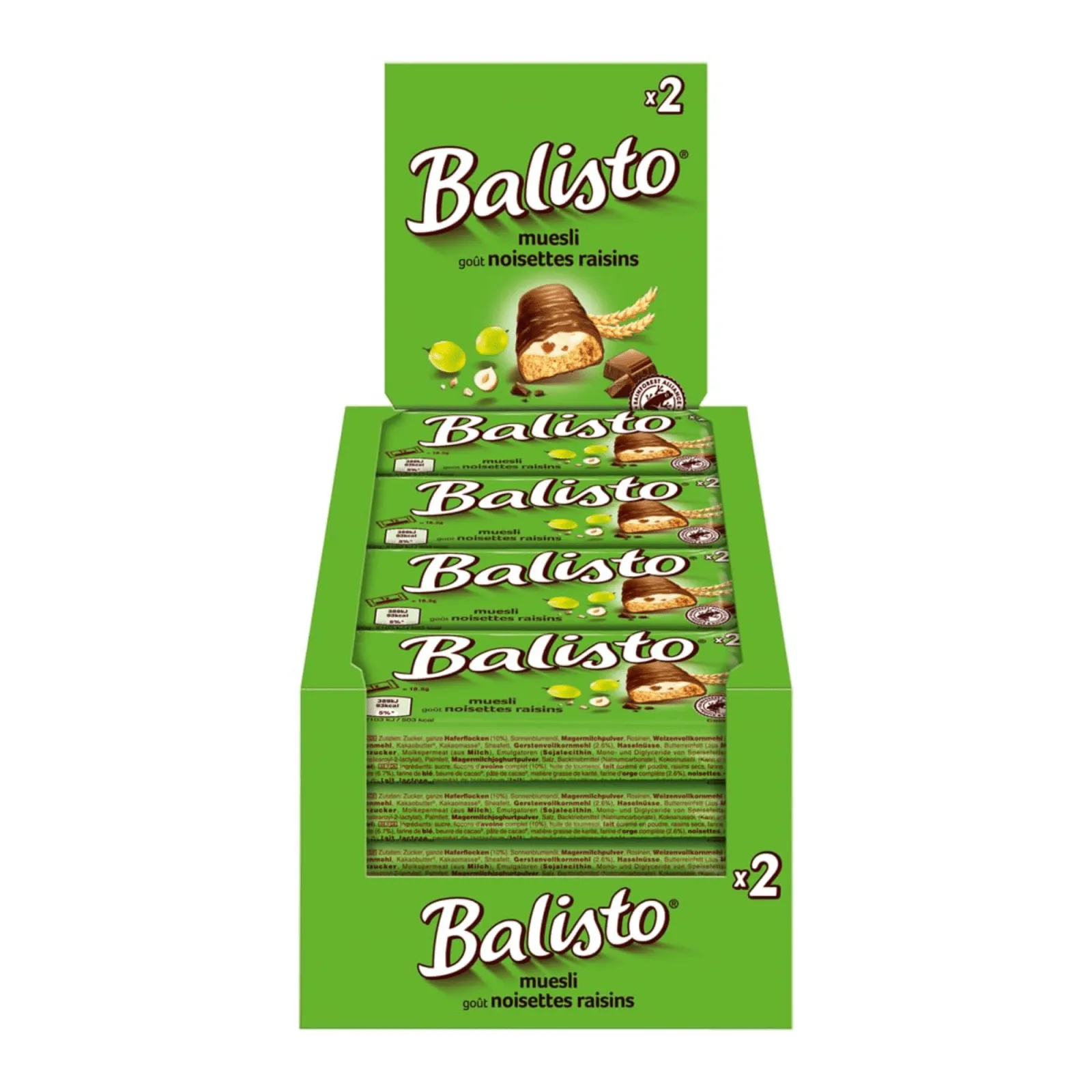 De 'groene' Balisto met muesli en rozijn is een heerlijke en verantwoorde snack, perfect voor die momenten wanneer je behoefte hebt aan iets zoets en voedzaams. De Balisto Rozijn is een graanreep die de natuurlijke smaken van volkoren granen combineert met sappige rozijnen en een vleugje honing, omhuld door een laagje romige melkchocolade. Het water loopt je al in de mond toch? Waar wacht je nog op. Op Compliment.nl bestel je eenvoudig en voordelig 20 per stuk verpakte Balisto Groen Rozijn Muesli repen à 37 gram per stuk. De verpakking is ideaal om mee te nemen onderweg voor een lekker tussendoortje, om te delen of voor de verkoop in kantines en snoepautomaten. Kortom, geschikt voor elk moment. Ontdek ook de Balisto Yoghurt Fruits Paars (20x37gr) en ons uitgebreide assortiment aan candybars hier.
