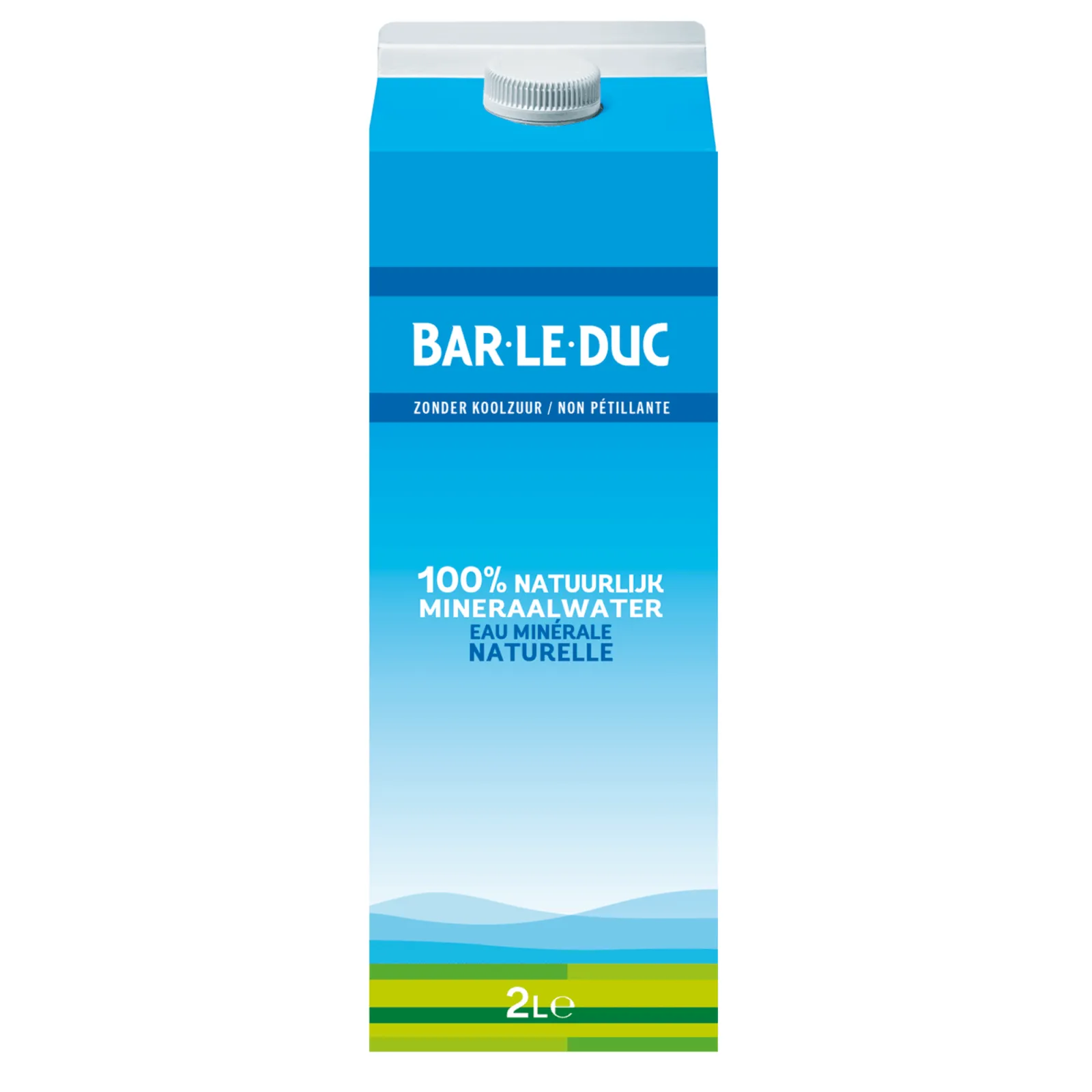 Bar-le-Duc Natuurlijk Mineraalwater komt rechtstreeks uit de bron. 100% lekker, 100% natuurlijk. Een slok Bar le duc water is heerlijk verkoelend. Je proeft de zachte smaak. Het water is van nature zuiver en heeft een unieke mineralenbalans, die goed is voor je lichaam. Bovendien is Bar-le-Duc mineraalwater natriumarm. Dit betekent dat het door iedereen gedronken kan worden, zelfs bij een zoutarm dieet. Daarnaast is Bar-le-Duc Mineraalwater erg geschikt voor de bereiding van babyvoeding. Je hoeft niet op zoek naar een Bar le duc aanbieding: bij online groothandel Compliment.nl koop je Bar le duc altijd voordelig. Je koopt Bar le duc per doos met 6 pakken van 2 liter.
