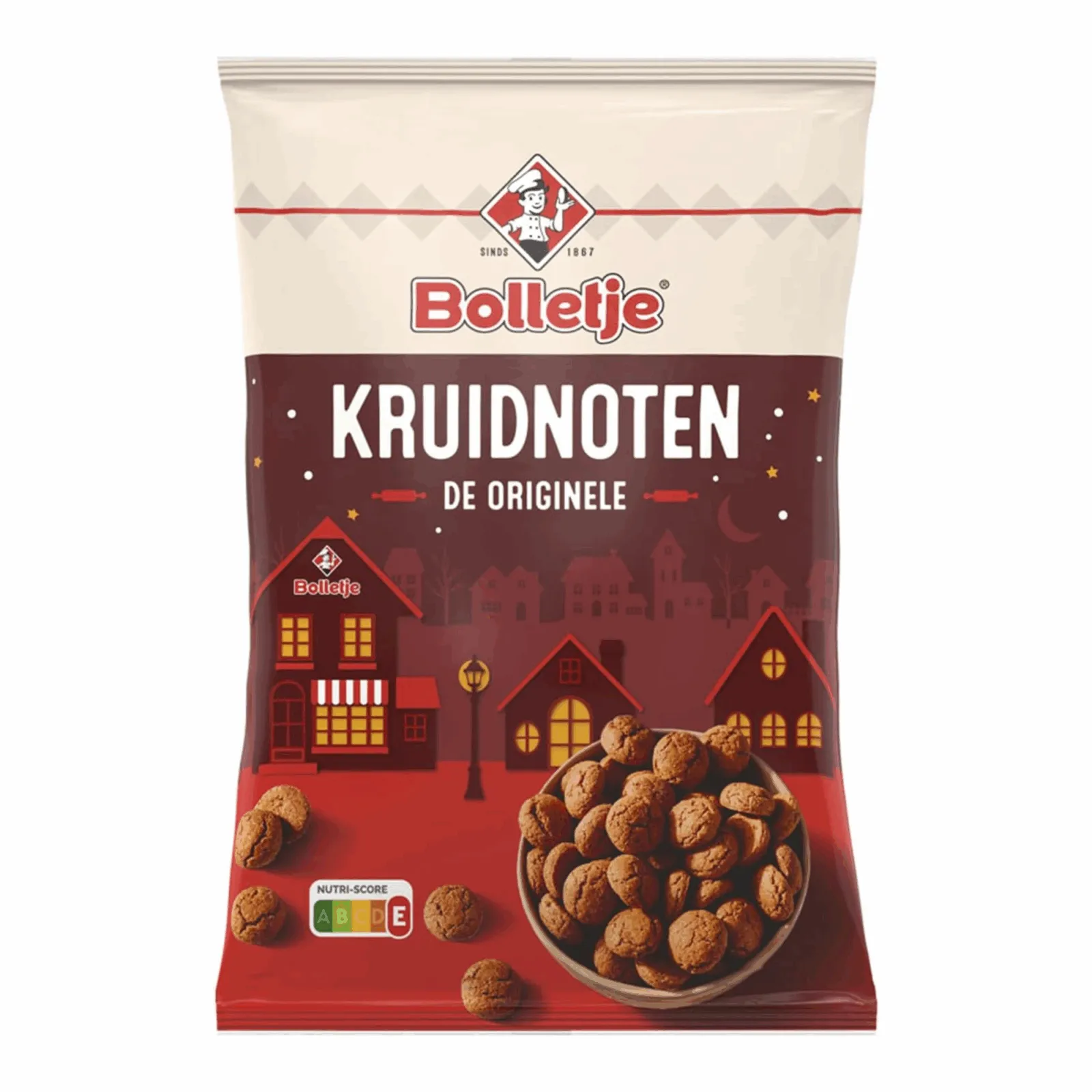 Ingrediënten: TARWEBLOEM, suiker plantaardige oliën (palm, raap), kruidnootjeskruiden (bevat kaneel), invertsuikerstroop, rijsmiddelen (E500, E450), gebrande suiker, zout, emulgator (SOJALECITHINE). Gemaakt in een bakkerij waar ook andere gluten, eieren, melk, noten en sesamzaad worden verwerkt.