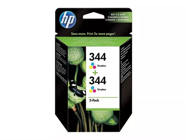 No.344 2x14ml 2x450pag Vivera*HP inkcartridge Nr.344 3-color 14ml*Geschikt voor HP DeskJet 5740. 5940. 6500. 6520. 6540.*6620. 6840. 9800. OfficeJet 6210. 7310. 7410. Photosmart*325. 375. 2610. 2710. 8150. 8450. 8750. PSC1610 en PSC2355.*Capaciteit 900 pagina's.*