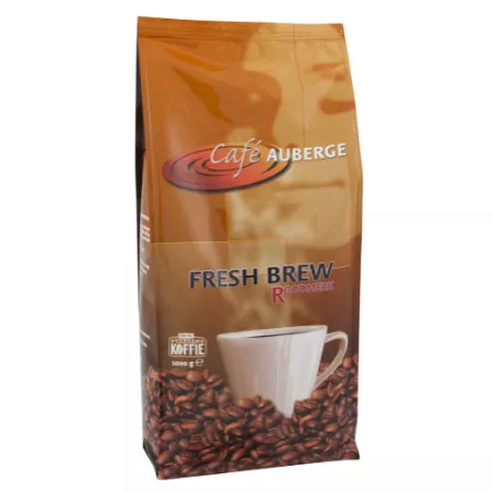Heerlijke fresh brew koffie van Café Auberge. Fresh brew is gemalen koffie van verse koffiebonen en is uitermate geschikt voor het zetten van zwarte koffie. Het is te vergelijken met de filterkoffie die vroeger thuis werd gezet, maar fresh brew heefteen grovere korrel. Met fresh brew koffie kun je grote hoeveelheden koffie in korte tijd zetten en is daardoor zeer geschikt voor bedrijven. Er zit 1 kg in een zak.