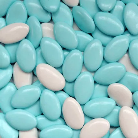 Chocoladedragees blauw/wit zijn verpakt in een silo van 900 gr. Daarmee is het een ideale traktatie bij de geboorte van een zoon. Een chocoladedragee is ruim 3cm. lang. In de silo van 900 gram zitten ongeveer 216 chocoladedragees. Zeker in het zuidendes lands of in België staan deze chocoladedragees beter bekend als doopsuiker of suikerboon.
