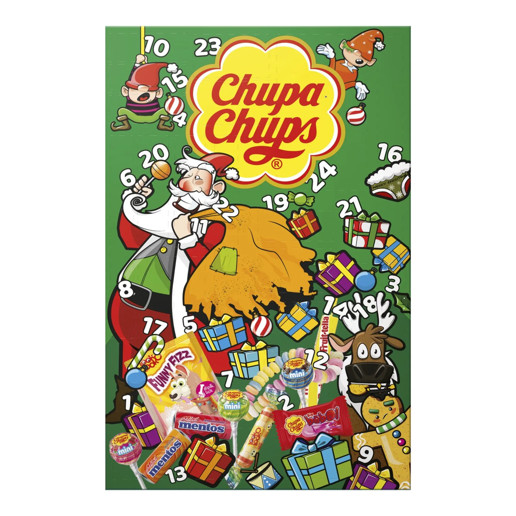Bij Compliment.nl koop je voordelig de Chupa Chups Adventskalender 180 g in een doos van 12 stuks, perfect om december op een vrolijke en zoete manier af te tellen. Met 24 verrassingen achter elk deurtje geniet je elke dag van een iconische lekkernij zoals Chupa Chups-lolly’s, Big Babol bubblegum of Melody Pops. Deze adventskalender is ideaal voor kinderen én volwassenen die dol zijn op kleurrijke zoetigheid en een originele twist willen in plaats van chocolade. De feestelijke verpakking maakt hem bovendien een eyecatcher onder de kerstboom en een leuk cadeau voor vrienden of familie. Dankzij het compacte formaat is de kalender handig neer te zetten of mee te nemen en toch royaal gevuld om de hele maand december van zoet plezier te voorzien. Perfetti van Melle levert hiermee een feestelijk product met de kwaliteit en smaakbeleving die je van Chupa Chups gewend bent. Een vrolijk, lekker en uniek alternatief dat de magie van december nóg specialer maakt.