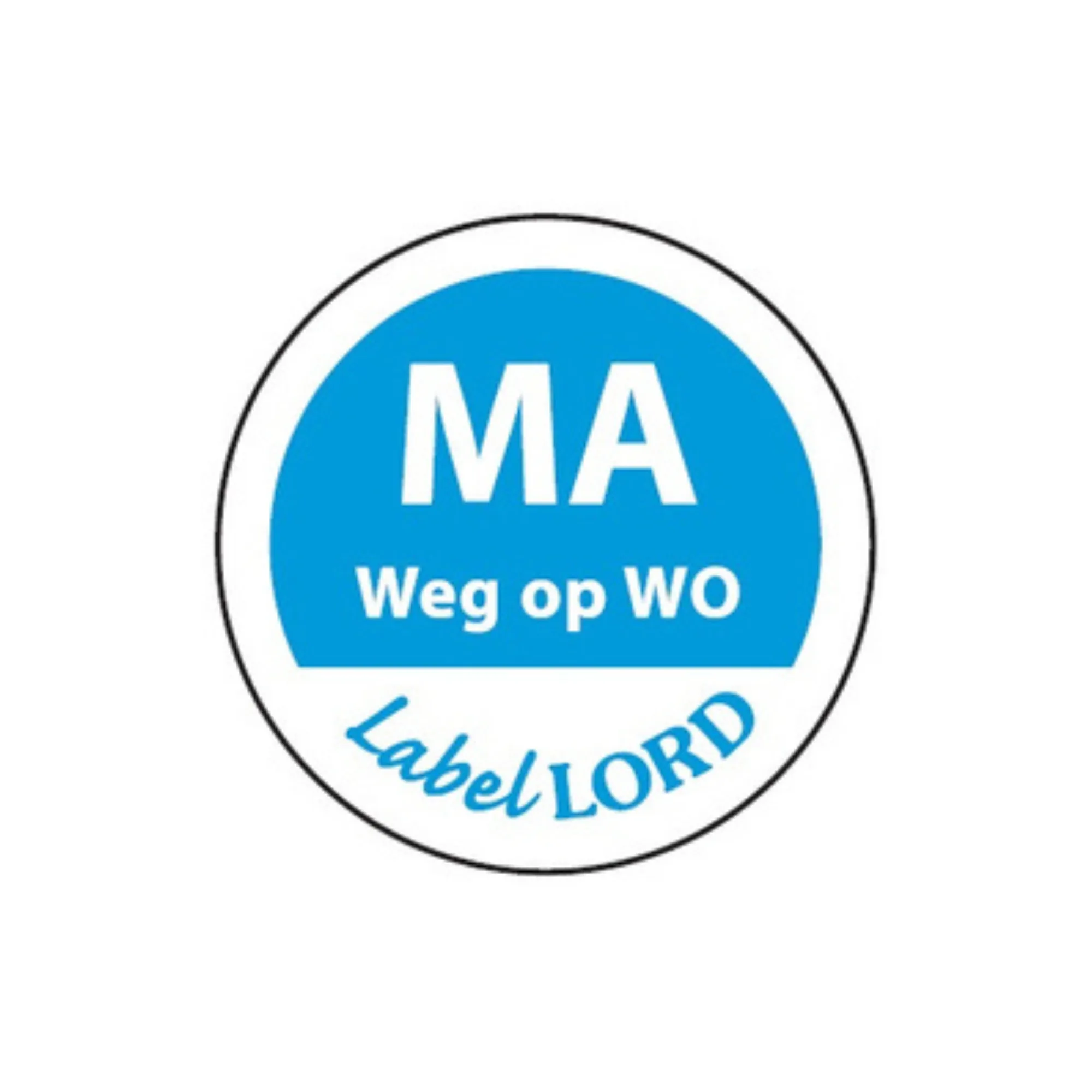Etiket ‘Maandag Weg Op Woensdag’ (500 stuks)