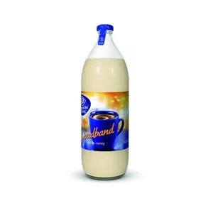 Friesche Vlag Goudband is een fluweelzachte koffiemelk, gemaakt naar traditioneel recept. Om in alle rust te genieten van een vol en romig kopje koffie. Maak meer van je koffie met Friesche Vlag. Een gesterilliseerde volle en romige koffiemelk in eenflesje van 1 liter. Er zitten 6 flessen in een tray.