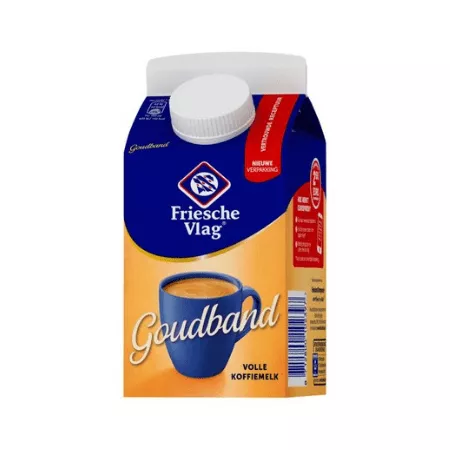 Met slechts een scheutje Friesche vlag goudband volle koffiemelk maak je jouw koffie lekker romig en zacht van smaak. Goudband koffiemelk wordt gemaakt van volle melk en is lang houdbaar. Gemaakt volgens traditioneel recept. Dit compacte pakje volle koffiemelk heeft een handige schenktuit met schroefdop. Hierdoor kan je het pakje koffiemelk na gebruik goed afsluiten waardoor de koffiemelk langer goed blijft. Voordelig Friesche vlag goudband volle koffiemelk kopen doe je natuurlijk bij Compliment.nl. Je koopt Friesche vlag goudband volle koffiemelk per 18 pakjes van 455ml.
