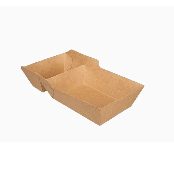 Serveer je friet of snacks en ben je nog opzoek naar een bakje met een natuurlijke uitstraling? Dan is dit snackbakje met sausvakje van karton een goeie optie. Het bakje is 15,9 bij 6,5 bij 3,5 cm groot en is bruin van kleur. Het bakje is ideaal om middelgrote porties patat, kibbeling of andere snacks met saus te serveren of mee naar huis te nemen. Karton wordt gemaakt van papierpulp en is vaak herkenbaar aan de natuurlijke en bruine uitstraling. Het is een natuurlijk materiaal en heeft als groot voordeel dat het hernieuwbaar en recyclebaar is en daarmee plastic afval tegengaat. Door de aangebrachte coating van PE is het bakje voedselveilig, en vetvrij.