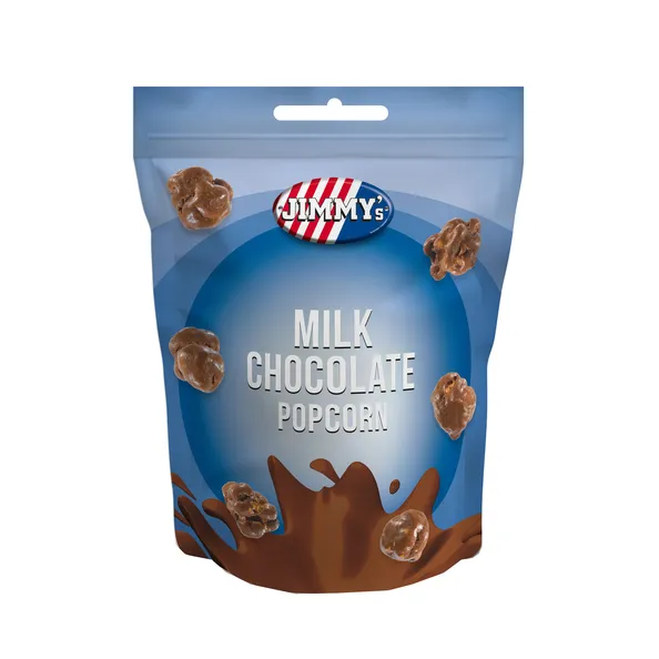 Het JIMMYs Chocolate Popcorn assortiment gebruikt alleen de beste natuurlijke ingrediënten. We poffen onze extra grote mais voordat we ze in onze unieke gezouten karamelsaus coaten. Ten slotte wordt de popcorn omhuld met een luxe chocolade! Onze popcorn met melk en witte chocolade heeft een royale coating waardoor elke hap een onweerstaanbare traktatie is voor chocolade liefhebbers. Het yoghurt & frambozen recept is uniek en heerlijk, gemaakt van een combinatie van romige yoghurt en echte witte chocolade, met een fruitige frambozensmaak.