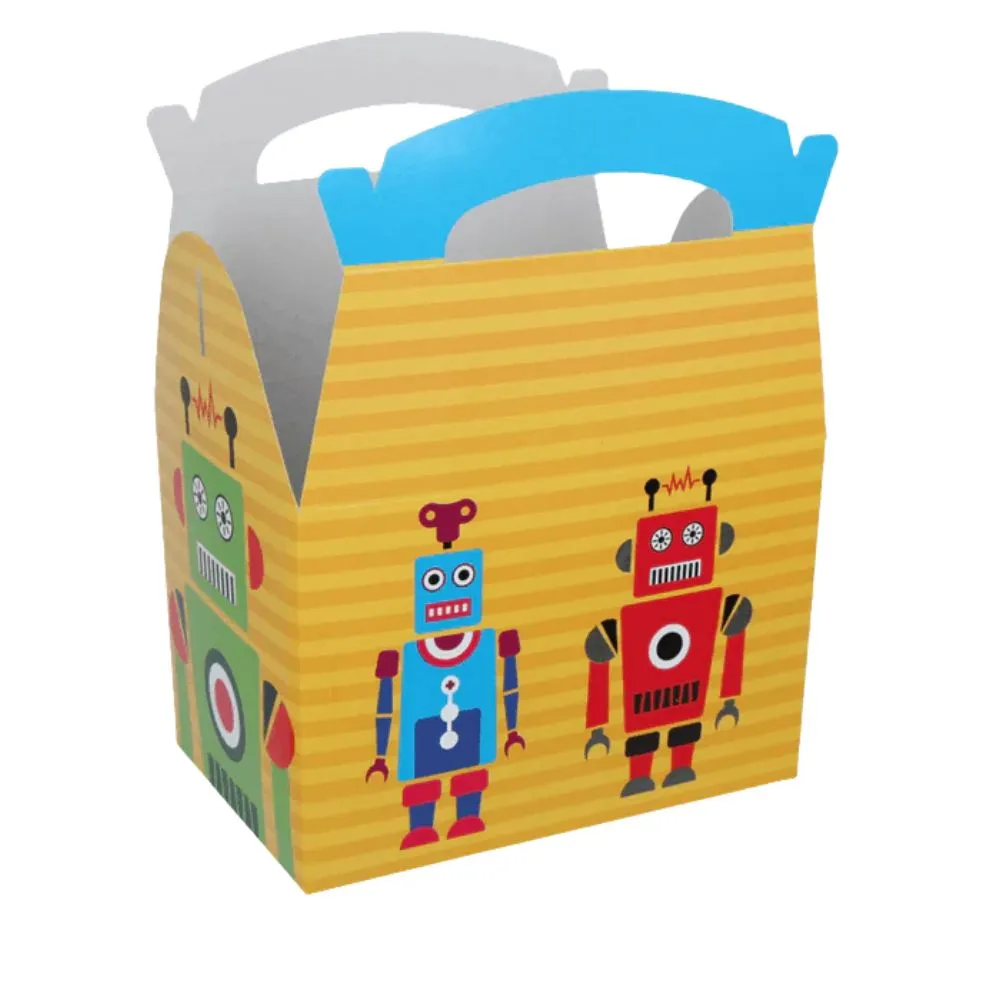 De afsluitbare kindermenuboxen zijn gemaakt van karton, hebben een stevige bodem en zijn dankzij de handgreep heel gemakkelijk mee te nemen. Leuk om te bewaren en thuis een tweede leven te geven. De boxen doen het goed bij zowel jongens als meisjes.
