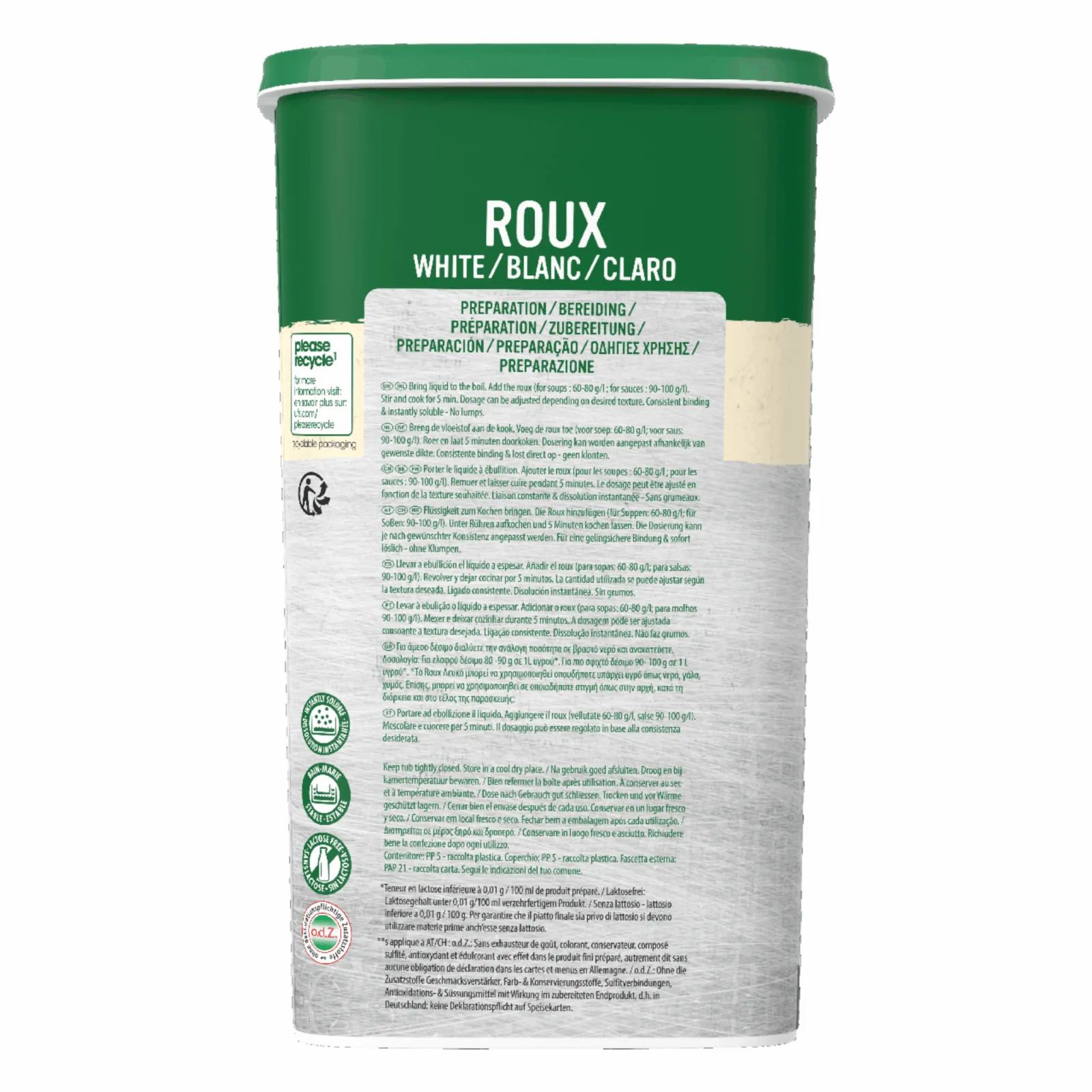 Knorr blanke roux heeft een neutrale smaak. Daardoor is Knorr blanke roux de ideale basis als binding van soepen, sauzen en ragouts. Knorr blanke roux lost snel op, schift niet en heeft geen klontvorming. Het is Lactosevrij en geschikt voor een vegetarische en veganistische voeding.