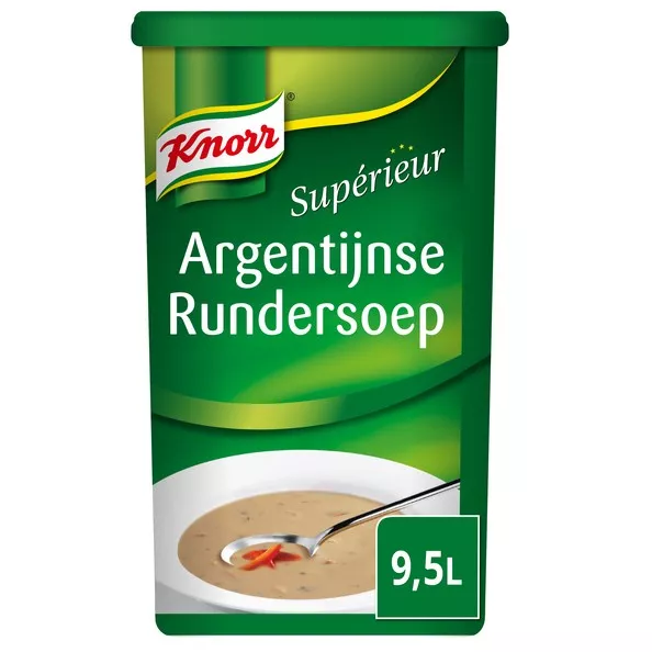 Een heerlijke Argentijnse van Knorr. Knorr soep staat voor kwaliteit, gemak en variatie. Met 1 bus is 9.5 liter Argentijnse rundersoep te maken. Er zit 1.045 kg in een bus.