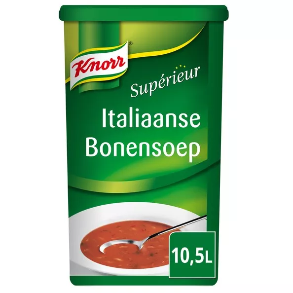 Een heerlijke Italiaanse bonensoep van Knorr. Knorr soep staat voor kwaliteit, gemak en variatie. Met 1 bus is 10.5 liter Italiaanse bonensoep te maken. Er zit 1 kg in een bus.