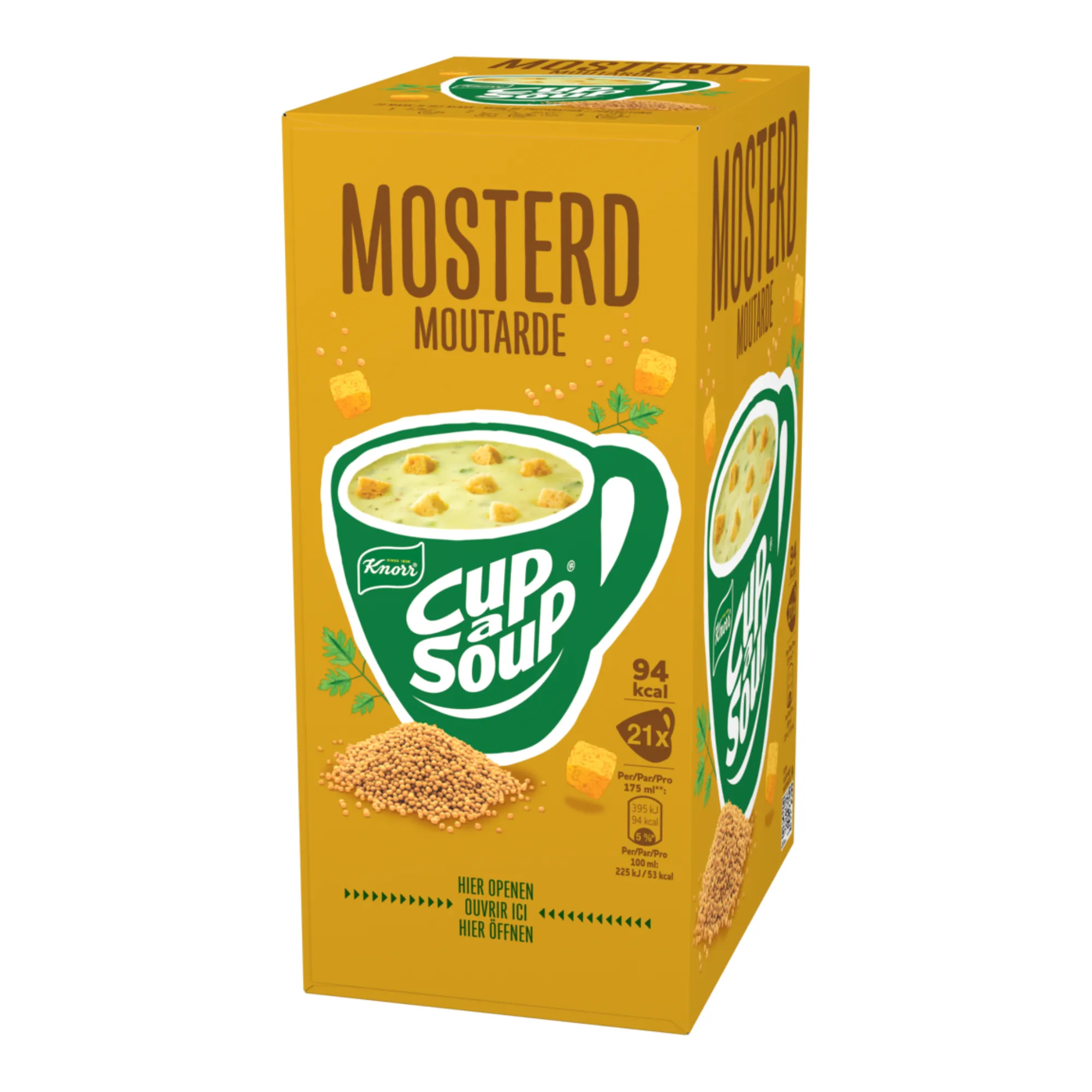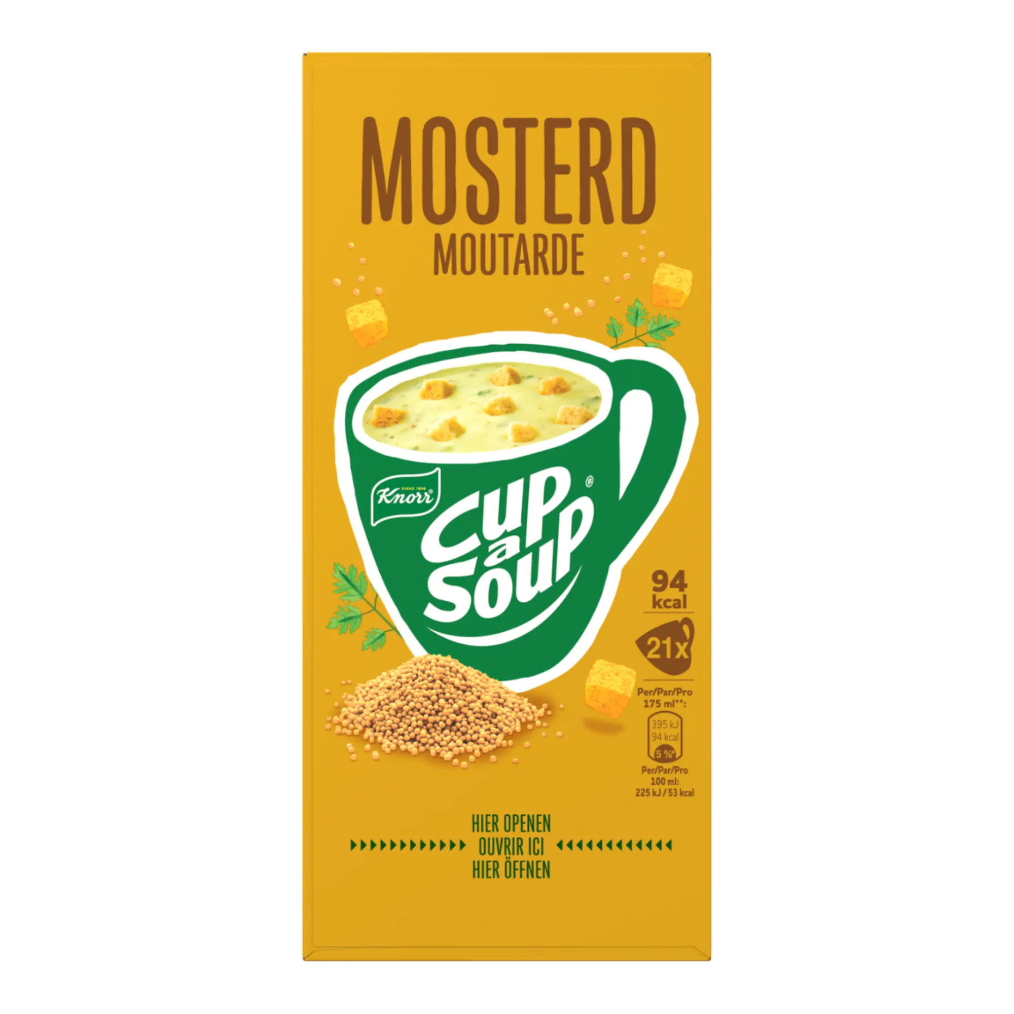 Bij Compliment.nl koop je voordelig Cup a Soup Mosterd, een snelle en hartige soep die perfect past bij een drukke dag of een moment waarop je weer even scherp wilt zijn. Deze krachtige soep heeft een volle smaak met een milde maar duidelijke mosterdkick die zorgt voor een echte oppepper. Ideaal als warm tussendoortje rond vier uur of wanneer je gewoon zin hebt in iets hartigs. Met Cup a Soup Mosterd zet je in no time een heerlijke mok soep op tafel, thuis, op kantoor of onderweg. Je hoeft alleen een zakje te openen, heet water toe te voegen en even te roeren. Binnen een minuut geniet je van een verwarmende soep met een rijke smaak.