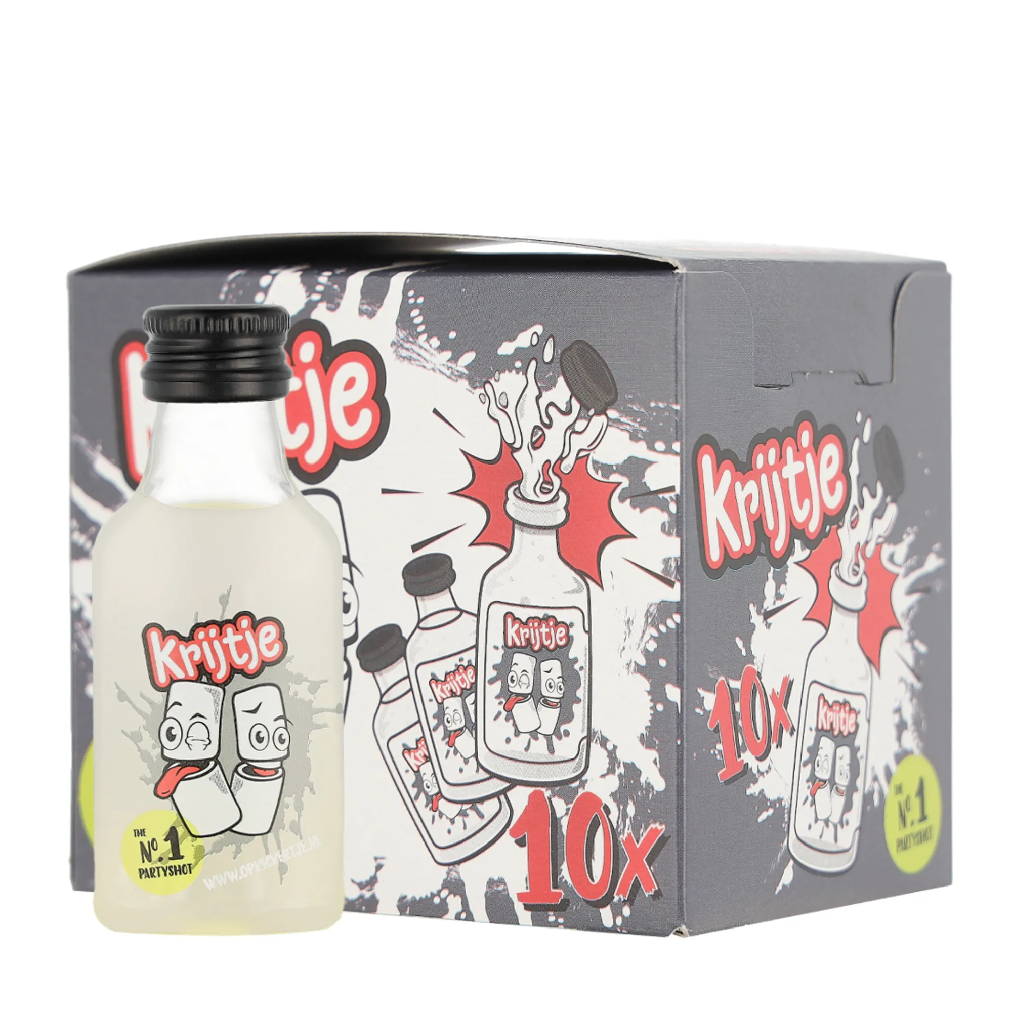 Bij Compliment.nl koop je voordelig Krijtje Shot (10x 2cl), een unieke en opvallende Nederlandse likeur die elke gelegenheid een speelse en nostalgische twist geeft. Deze mini-shots, verpakt in handige flesjes van 2cl, combineren een romige dropsmaak met een zachte zoetheid die doet denken aan het iconische krijtdropsnoepje. Het resultaat is een verrassend zachte, volle likeur die perfect in balans is tussen zoet, kruidig en fris. Krijtje Shot heeft een alcoholpercentage van 14,9% en is direct klaar voor gebruik – ideaal om uit te delen tijdens feestjes, borrels, festivals of verjaardagen. Dankzij het compacte formaat zijn de flesjes gemakkelijk mee te nemen en eenvoudig te serveren. Geniet ervan puur als shot of gebruik het als creatieve toevoeging in cocktails voor een extra zoete, speelse twist. Deze populaire likeur brengt jeugdherinneringen tot leven en is inmiddels een echte favoriet onder feestgangers en liefhebbers van bijzondere dranken.