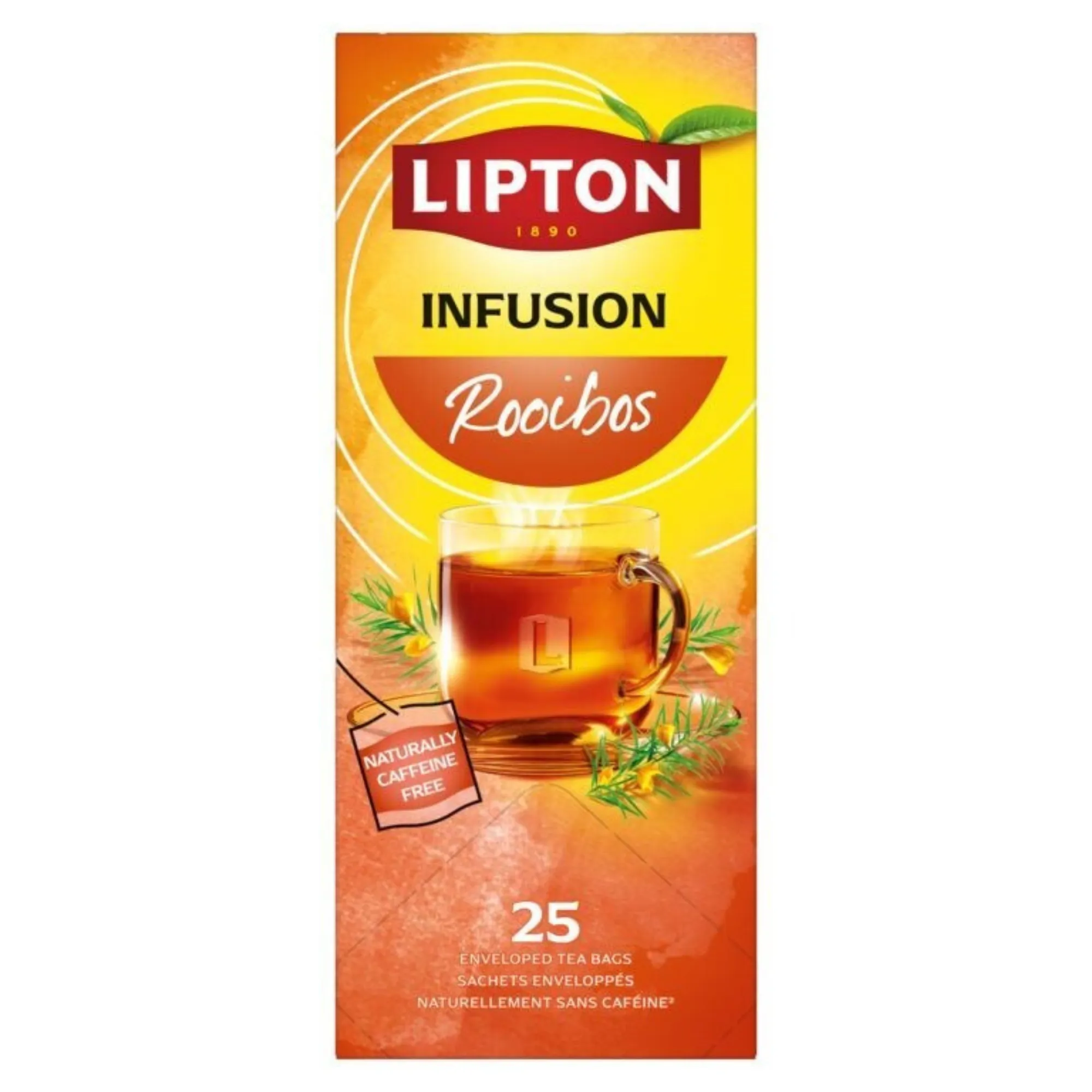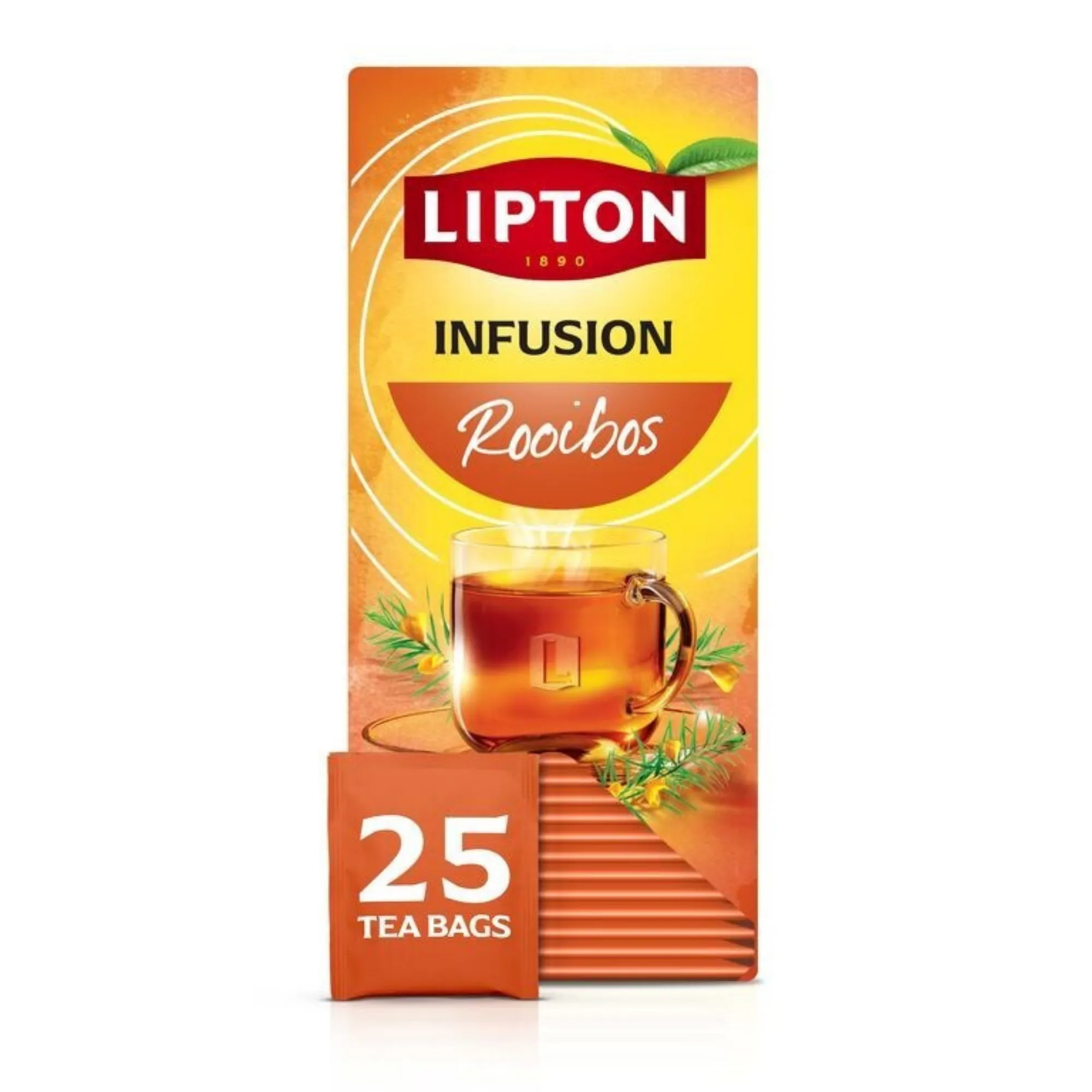 Lipton Feel Good Thee Rooibos heeft een zacht houtachtig smaakprofiel met een zoete nasmaak. Deze thee helpt om een moment van ontspanning te creëren. Geschikt voor op kantoor, in sportkantines of bij catering voor het ontbijt, de lunch of het buffet. Bereid de thee gemakkelijk en snel door het theezakje 2-3 minuten te laten trekken. De theezakjes zijn per stuk verpakt in folie-envelop. Deze enveloppen bieden optimale bescherming voor de thee, hiermee blijft de geur en smaak goed behouden. De doos bevat 25 theezakjes in individuele verpakking. Probeer ook eens een van de andere varianten: Lipton Feel Good Thee biedt een breed assortiment van zwarte en groene theeën, fruit en kruiden infusies.