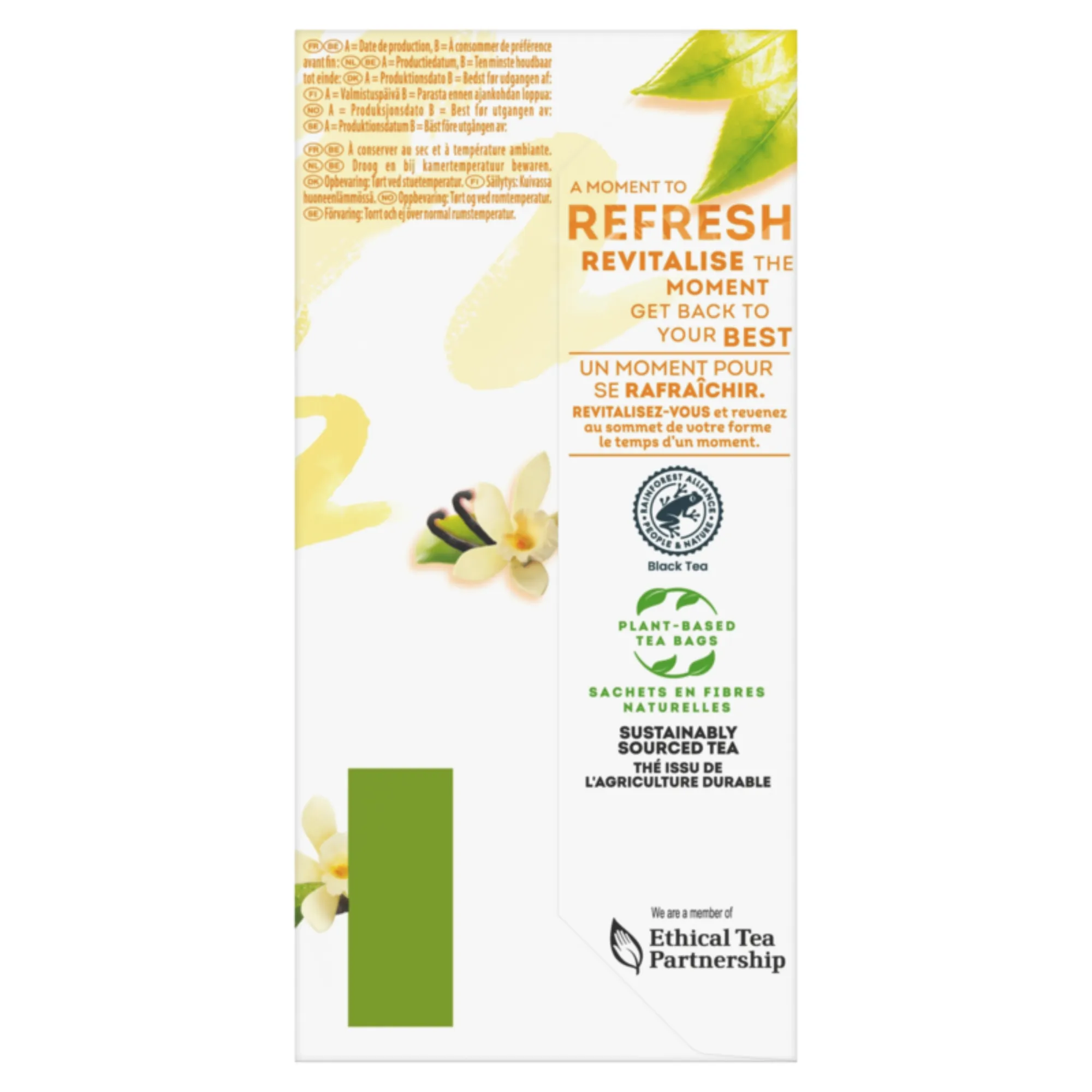 Ontdek de heerlijke Lipton Feel Good Selection Thee Vanille (150x 1,6gr) - een zwarte thee verrijkt met de zoete, romige smaak van vanille. Deze thee biedt een verfrissend moment, ideaal voor op kantoor, in sportkantines, of bij catering voor ontbijt, lunch of buffet. Duurzaam geteeld van Rainforest Alliance gecertificeerde theeplantages, biedt elke folie-verpakte theezakje optimale bescherming om de geur en smaak optimaal te behouden. Met 25 theezakjes per doos kunt u genieten van langdurig plezier. Ontdek ook onze andere varianten binnen de Lipton Feel Good Thee collectie, die een breed assortiment van zwarte en groene theeën, fruit- en kruideninfusies biedt. Voeg een vleugje verfijning toe aan uw dagelijkse thee-ervaring met Lipton Feel Good Thee Vanille.