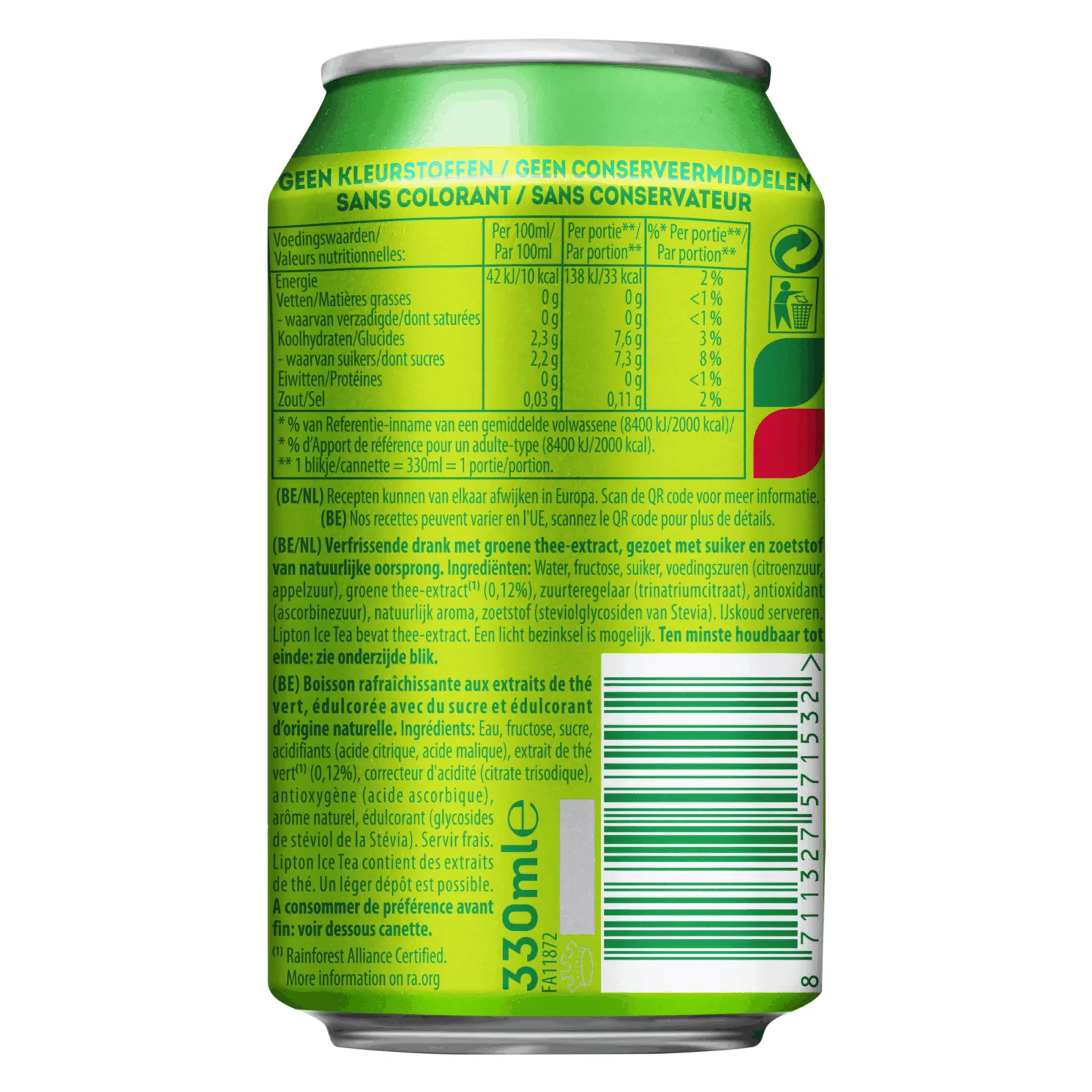 Lipton Ice Tea Green Pure is inmiddels één van de populairste soorten uit de Lipton Familie. Deze Liption Ice Tea Green is een heerlijk koolzuurvrije Icetea. Het groene thee extract bevat weinig calorieën en is gezoet met suiker en zoetstof die een natuurlijke oorsprong hebben. Bij online groothandel Compliment.nl verkopen wij de Lipton Ice Tea Green Pure per tray. In een tray zitten 24 blikjes van 0,33cl. Bestel online en profiteer van onze scherpe bezorgtarieven. Ook particulieren mogen LiptonIce Tea Green Pure online bestellen bij groothandel Compliment.nl.