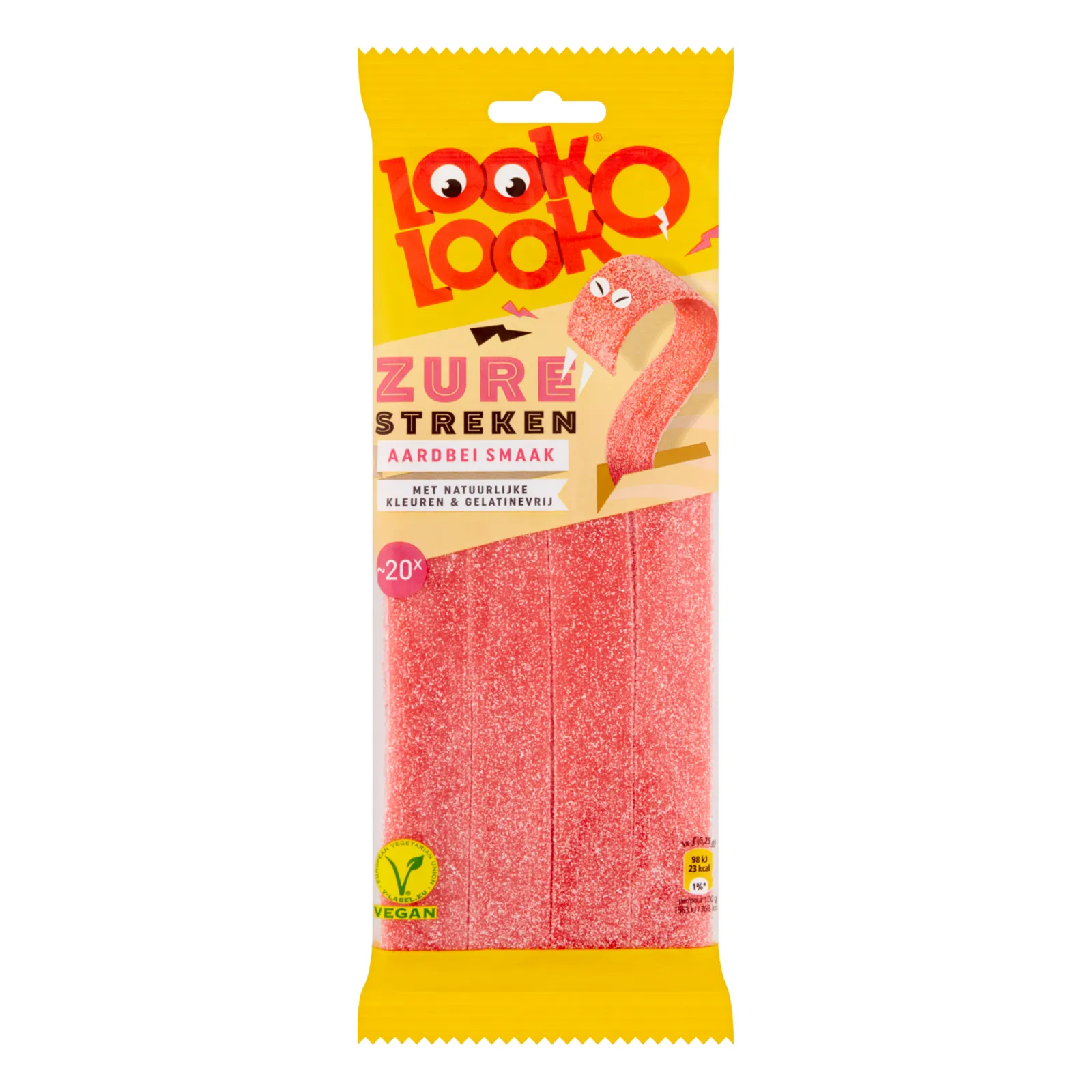 De Look-O-Look Zure Matten Aardbei – 18 x 125 g zijn echte klassiekers voor liefhebbers van zoet én zuur snoep. Deze lange snoepmatten hebben een duidelijke aardbeiensmaak gecombineerd met een frisse zure coating, wat zorgt voor een lekkere kick bij elke hap. De matten zijn soepel van structuur en makkelijk te portioneren, ideaal om uit te delen, te gebruiken bij traktaties of op een snoeptafel. Look-O-Look staat bekend om kleurrijk en speels snoep, en deze zure aardbeimatten passen daar perfect bij. Met deze grootverpakking heb je altijd genoeg voorraad voor elk uitdeelmoment.