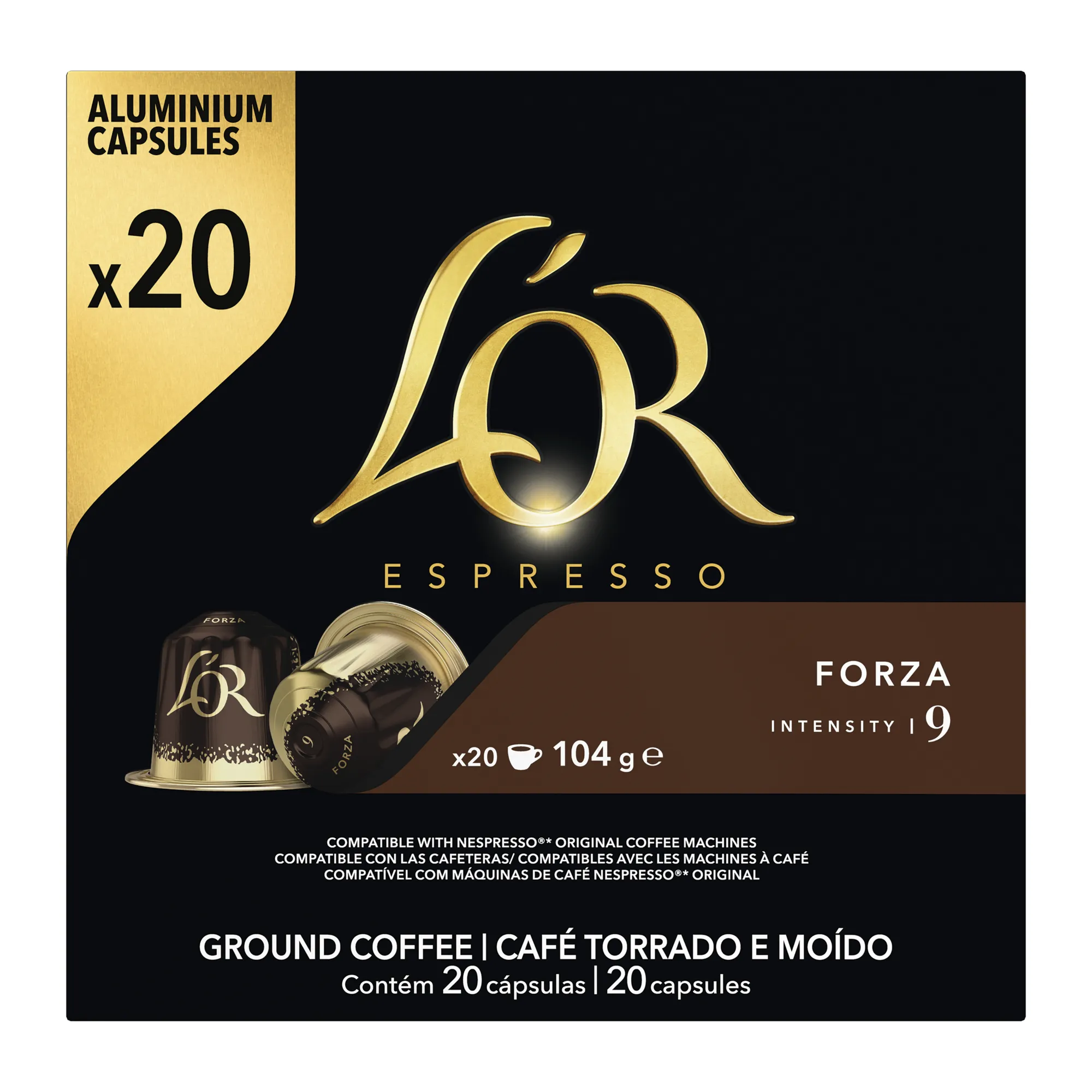 Ervaar de krachtige karaktertrek van L’OR Espresso Forza Koffiecups (20 capsules) — een intense espresso met een uitzonderlijke diepgang. Deze donker geroosterde melange heeft een smaakintensiteit van 9/12 en combineert kruidige tonen van eik en zoethout met een verfijnde crèmelaag. Een krachtige keuze die je zintuigen prikkelt — perfect voor een stevige espresso of als robuuste basis in melkspecialiteiten.