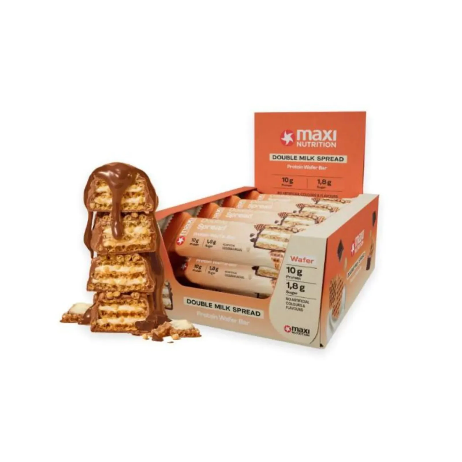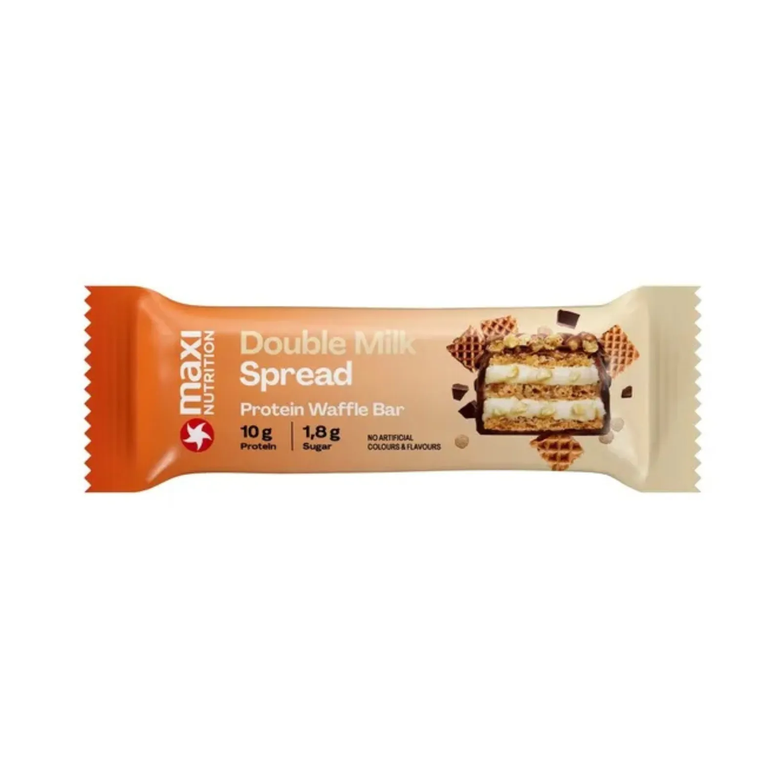 MaxiNutrition Waffle Bar Double Milk Spread is een eiwitrijke snack met een knapperige wafellaag en een romige melkcrèmevulling. Deze sportieve snack combineert een luchtige wafelstructuur met een zachte melkspread en een omhulsel van chocolade, wat zorgt voor een rijke smaak en een aangename bite. Ideaal als snelle snack na het sporten, onderweg of tijdens een drukke dag. Dankzij het compacte formaat van 40 gram neem je de reep gemakkelijk mee in je tas of sporttas. De doos bevat 12 wafels, perfect voor voorraad of sporters die regelmatig een eiwitrijke snack gebruiken.