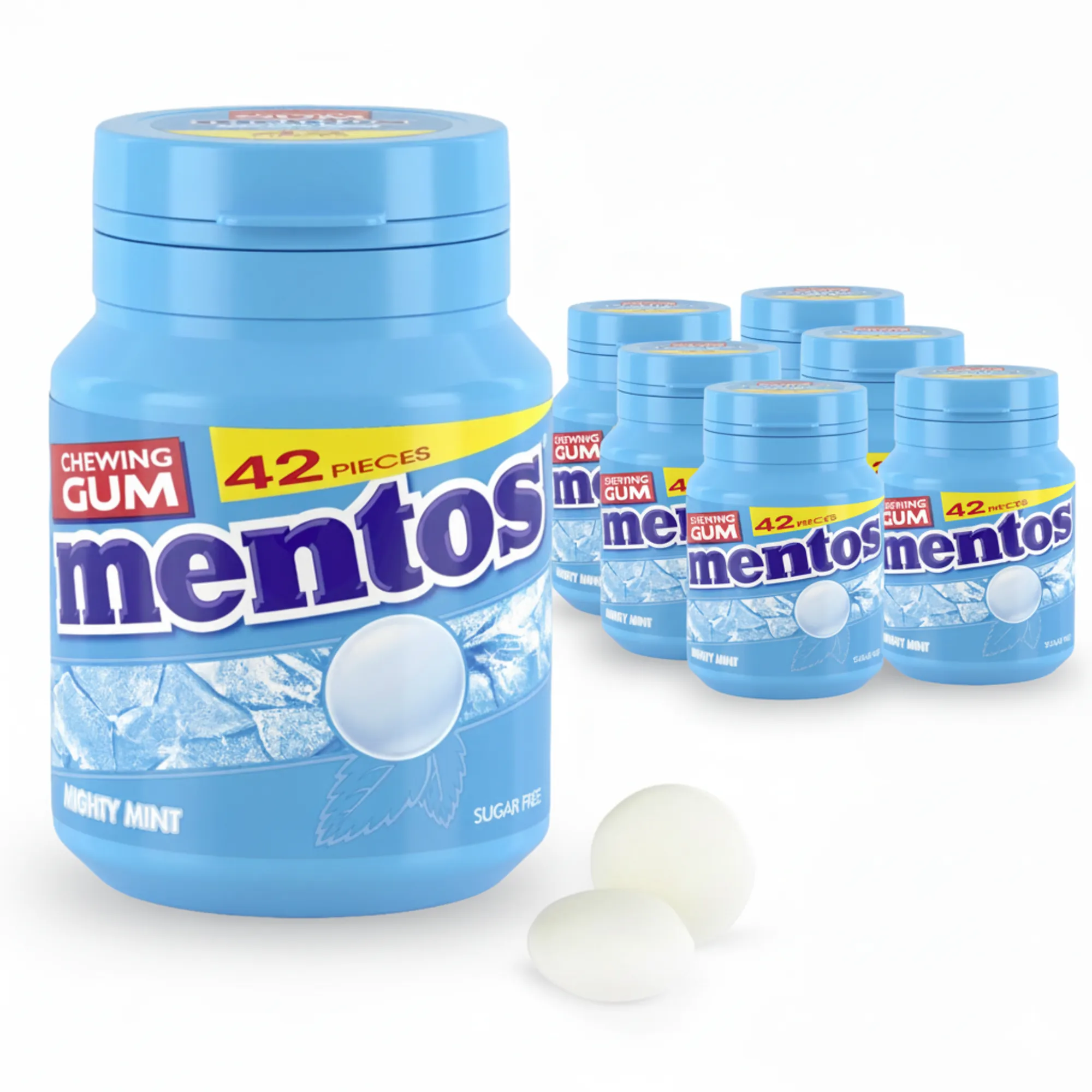 Bij Compliment.nl koop je voordelig Mentos Gum Mighty Mint Bottle (6 potjes à 42 stukjes), de ultieme kauwgom voor een langdurig frisse adem en een krachtige muntsensatie. Deze bekende ronde Mentos-kauwgom biedt een intense, verfrissende smaak van pepermunt die je mond direct schoon en koel laat aanvoelen. Dankzij de handige hersluitbare pot zijn de kauwgoms perfect om mee te nemen naar kantoor, in de auto of onderweg. Mentos Gum Mighty Mint bevat geen suiker, maar wel verfrissende zoetstoffen die helpen je tanden natuurlijk wit te houden en bijdragen aan een frisse mondverzorging. Of je nu na het eten even wilt opfrissen of gewoon zin hebt in iets lekkers, met deze kauwgom zit je altijd goed. Verfrissend, praktisch en onweerstaanbaar fris, precies wat je van Mentos mag verwachten.