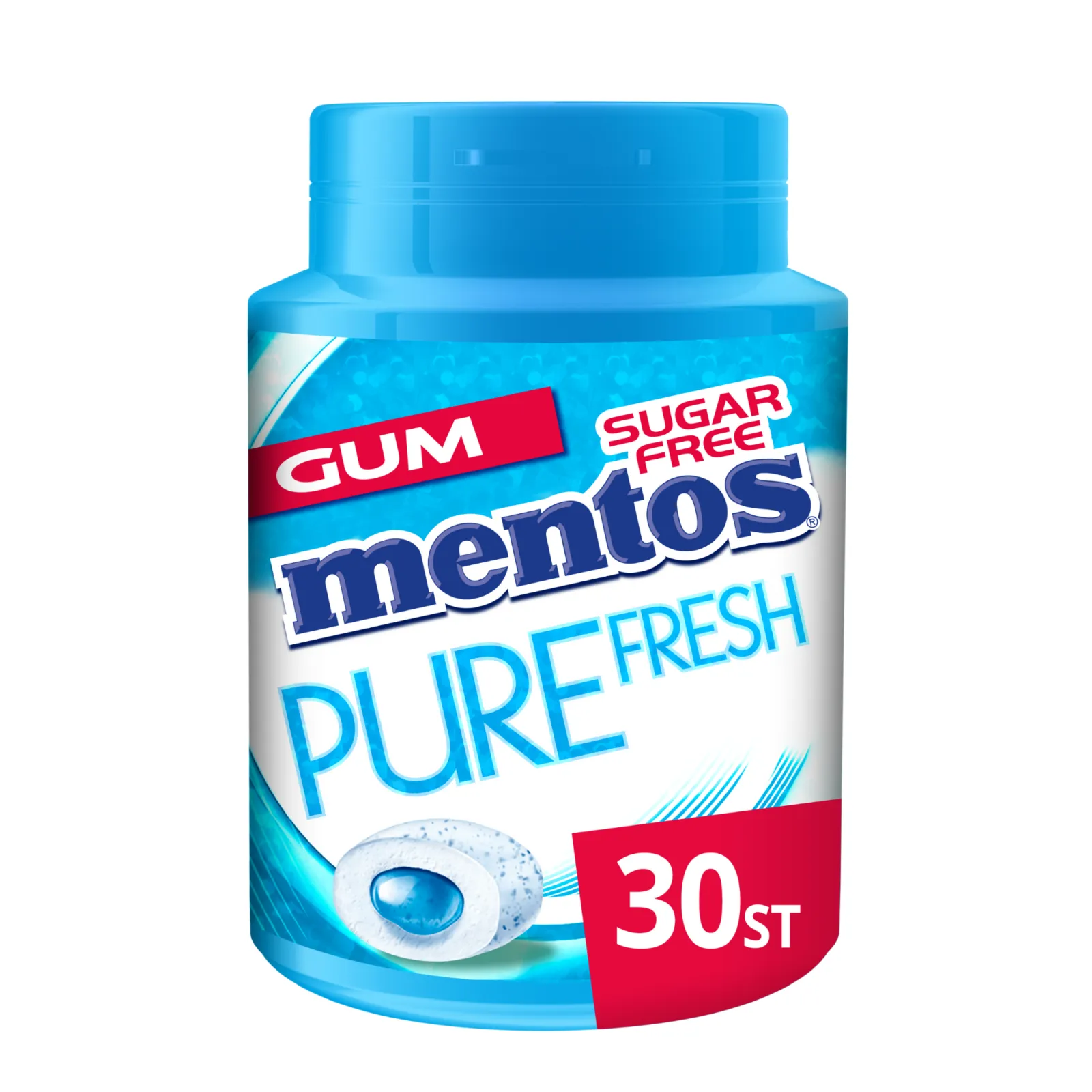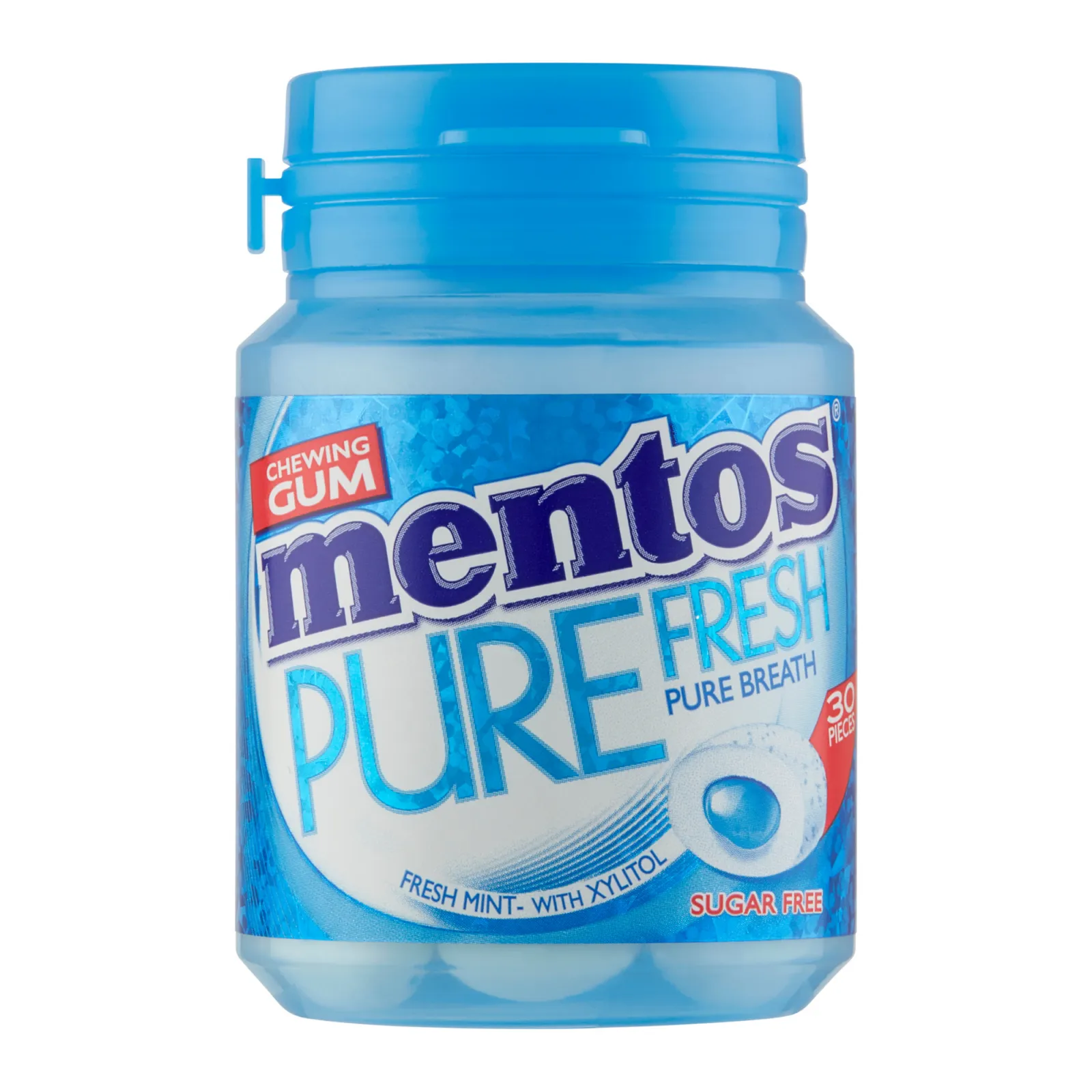 De Mentos Kauwgom Pure Fresh is een suikervrije kauwgom met een frisse muntsmaak, verpakt in een handige hersluitbare bottle. Deze variant is bedoeld voor dagelijks gebruik en helpt je op een makkelijke manier je adem fris te houden, thuis, op kantoor of onderweg. Door de bottle-verpakking pak je snel een stukje en blijft de kauwgom langer vers.
