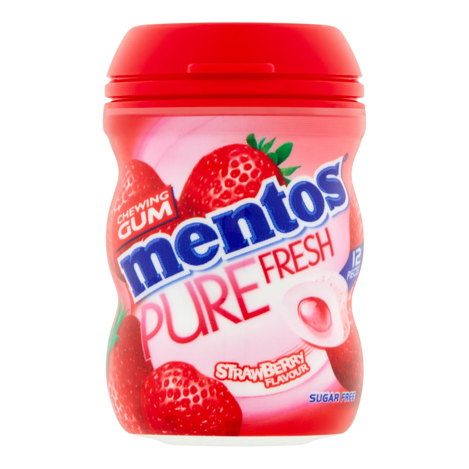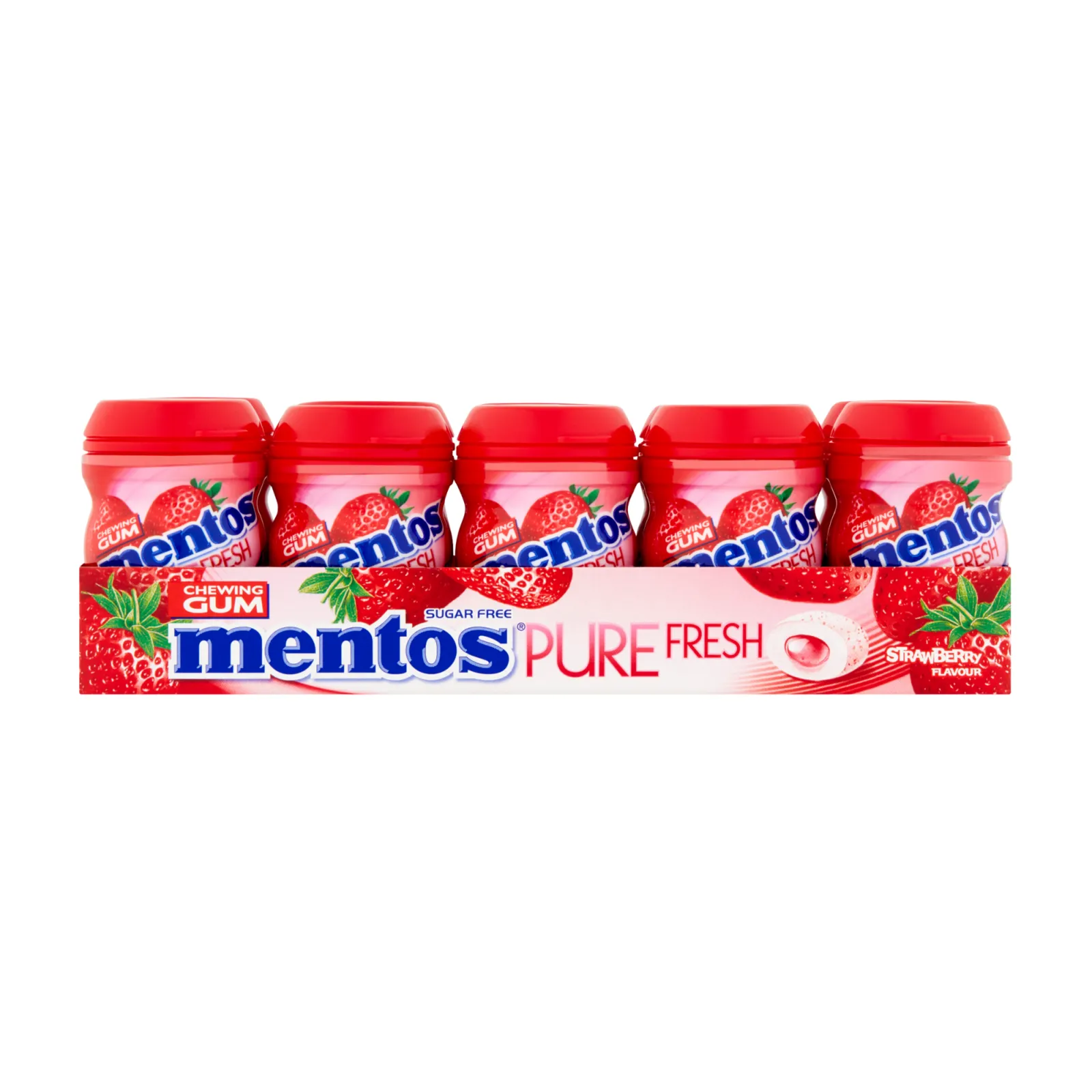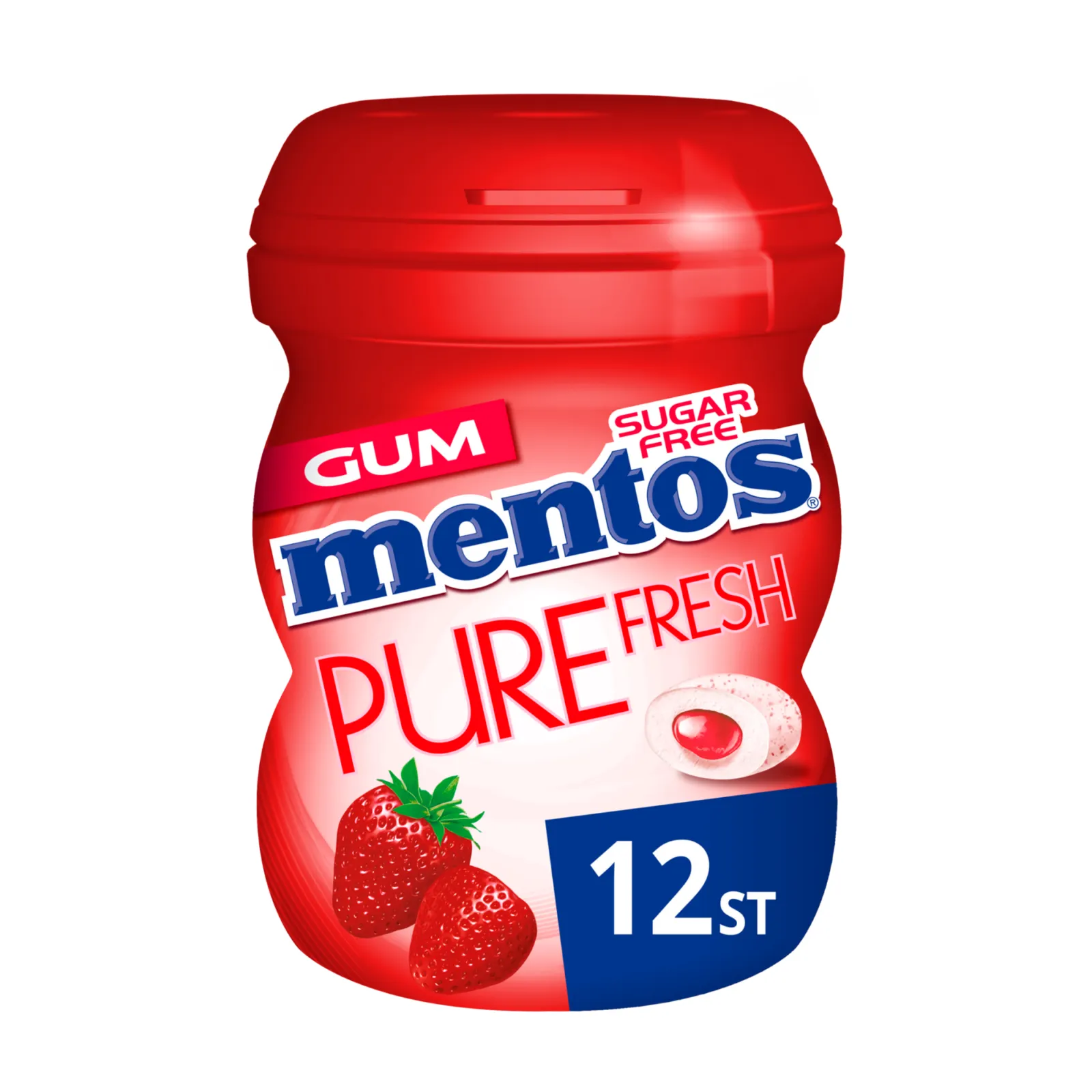 De Mentos Gum Pure Fresh Strawberry Mini is een suikervrije kauwgom met een frisse aardbeiensmaak, verpakt in een handig hersluitbaar minipotje van 24 gram. Ideaal voor onderweg, op kantoor of in de auto. De stevige kauwgom zorgt voor langdurige frisheid en blijft goed van smaak. Deze set van 10 minipotjes is perfect voor wederverkoop, kantines of als praktische voorraad.