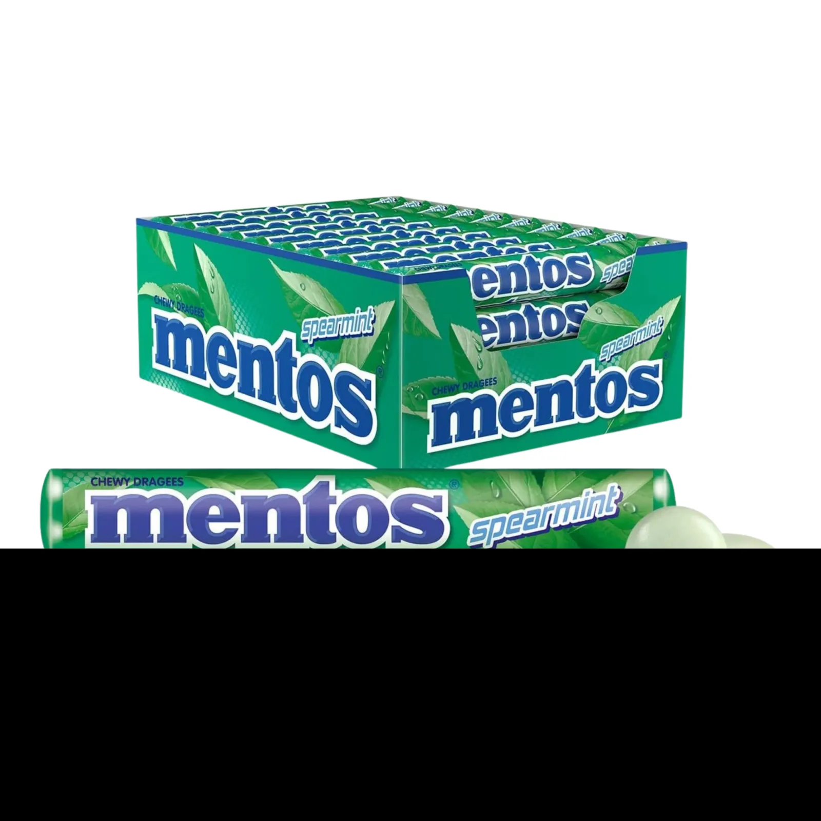 De Mentos Spearmint rol is een klassieke Mentos-variant met een frisse, lichtzoete spearmintsmaak. De snoepjes hebben de bekende Mentos-structuur: een stevige buitenkant met een zachte binnenkant, wat zorgt voor een prettige bite en een langdurige frisse smaakbeleving. Deze rol van 37,5 gram is ideaal om mee te nemen onderweg, in je tas of auto, en wordt ook veel gebruikt voor balieverkoop of uitdeling. Spearmint staat bekend om zijn milde frisheid en is daardoor geliefd bij een breed publiek. Een betrouwbare keuze voor wie houdt van frisse muntsnoepjes zonder scherpe nasmaak.