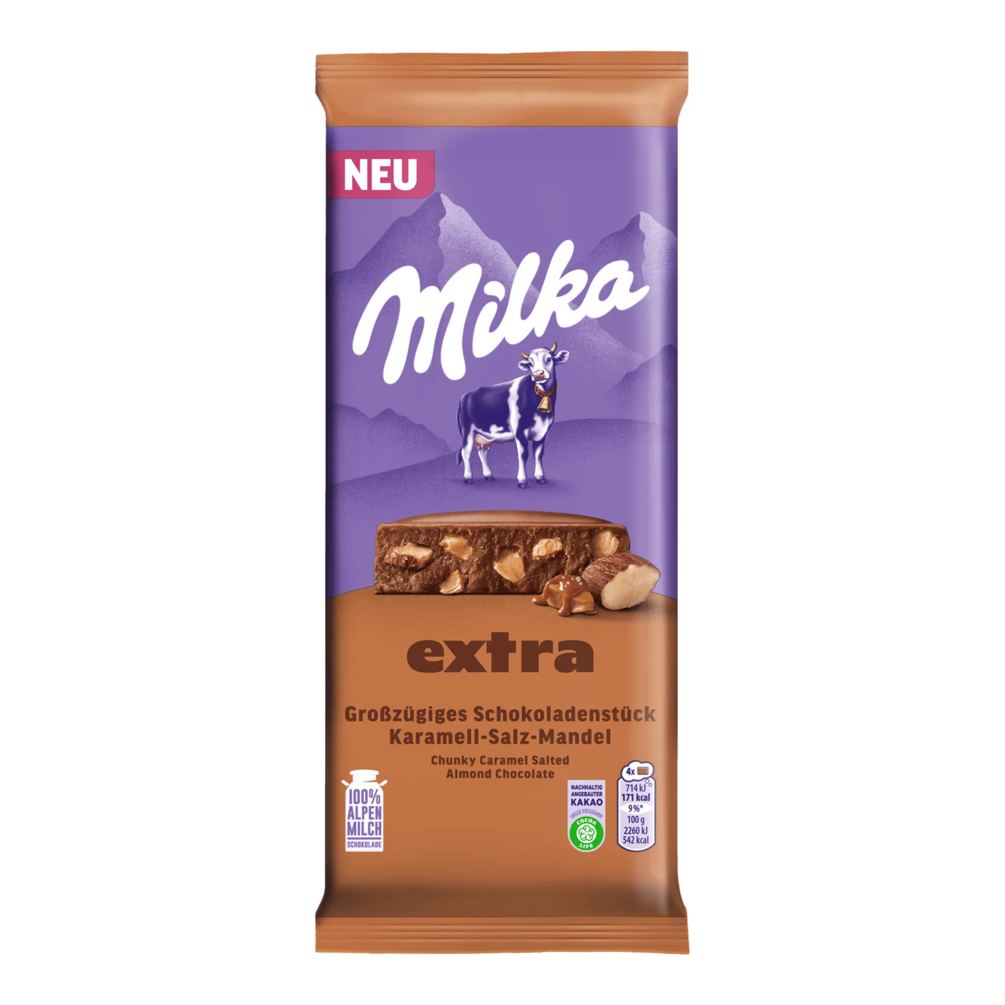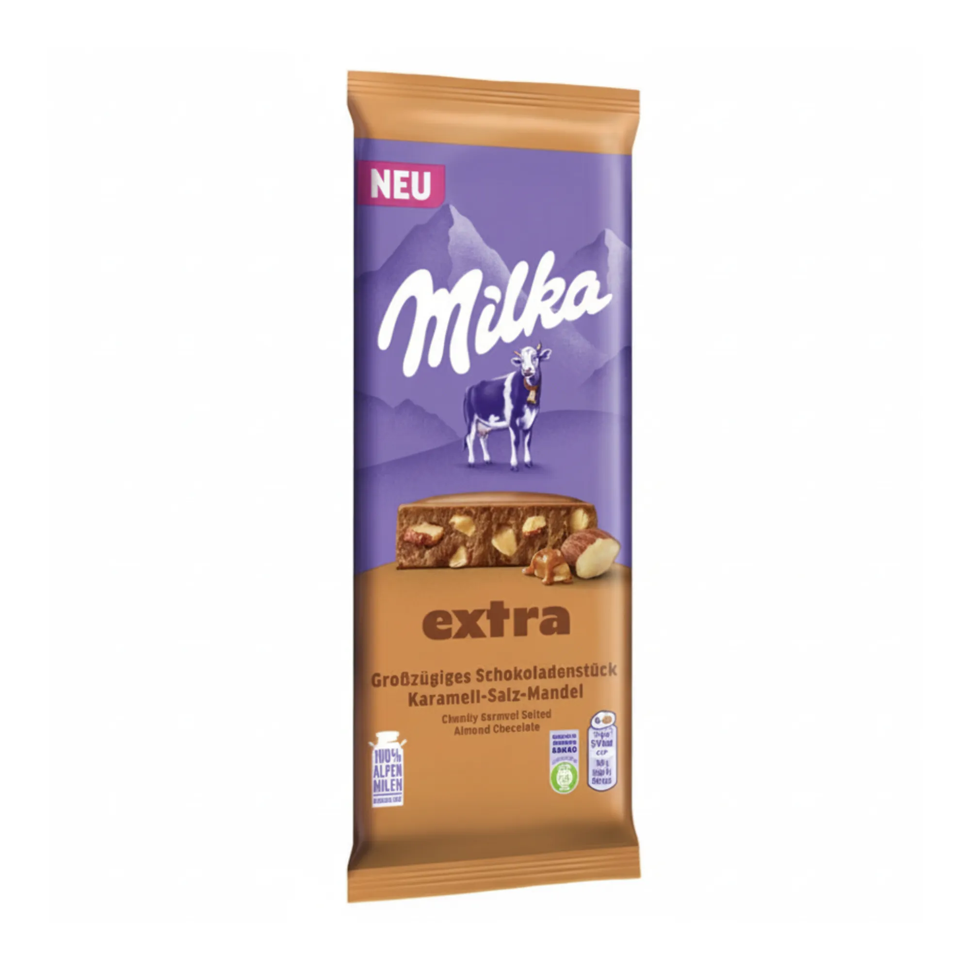 - Milka melkchocolade met gekarameliseerde amandelen en zeezout