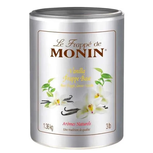 De Monin Frappé Vanilla 1,36 kg is een poedermix die zorgt voor een romige, basis met de zoete smaak van vanille. Deze mix is speciaal ontwikkeld voor professionele bereiding van frappés, iced coffee-dranken, milkshakes en smoothies. Dankzij de combinatie van suiker, magere melkpoeder en natuurlijke vanille-aromas ontstaat een zachte textuur die goed mengt met ijs, melk of espresso in een blender of shaker. De mix is eenvoudig in gebruik: voeg melk of water toe, blend kort en serveer direct als verfrissende koude drank. Met een inhoud van 1,36 kg is de verpakking geschikt voor intensief gebruik en biedt deze een stabiele smaak- en schuimstructuur bij elke bereiding. Bewaren op een droge, koele plaats en na openen goed afsluiten.