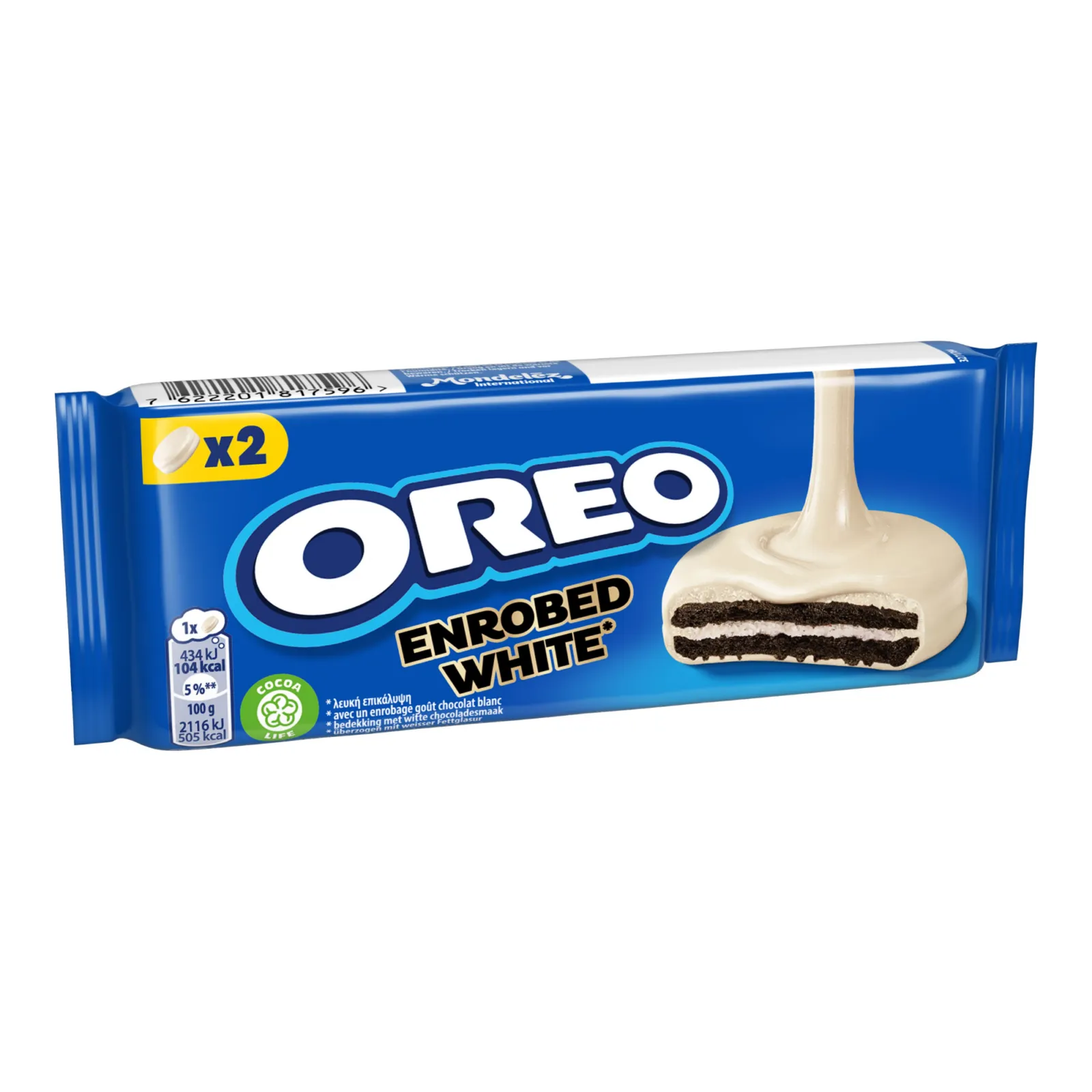 Dit onweerstaanbare koekje neemt de klassieke Oreo-ervaring naar een nieuw niveau. Dit koekje bestaat niet alleen uit twee chocoladekoekjes met in het midden een romige laag van zoete vanillecrème, maar is ook nog omhuld met een laag van zijdezachte witte chocolade. Of je nu geniet van een momentje voor jezelf of deze traktatie deelt met vrienden en familie, Oreo Covered White is de ideale keuze voor elke gelegenheid en wordt geliefd door jong en oud. Deze Oreo's zijn handig per 2 stuks verpakt, dus ideaal voor onderweg. De Oreo koekjes worden per 24 x 2 verkocht. Oreo is gemaakt met duurzaam geproduceerde cacao uit het Cocoa Life programma. Probeer ook de andere Oreo koekjes.