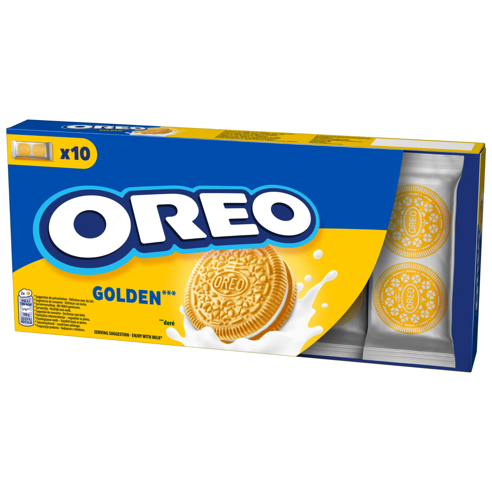 De Oreo Gold is een schitterende variatie op het klassieke Oreo-koekje en maakt de keuze tussen deze twee een ware uitdaging. De Oreo Gold heeft de vertrouwde Oreo smaak: twee biscuits met in het midden een romige laag van zoete vanillecrème, maar dan in een gouden jasje. Leuk om eens te variëren of juist te combineren. Dip ze in de melk, thee of koffie. Gebruik ze bij het bakken en door je dessert of milkshake. Of eet ze gewoon lekker op. Wat je ook doet, het is altijd genieten met Oreo Gold. Deze Oreo's zijn handig per 2 stuks verpakt, dus ideaal voor onderweg. De Oreo koekjes worden verkocht per doos met 8 doosjes van 10x2stuks. Probeer ook de andere Oreo koekjes.