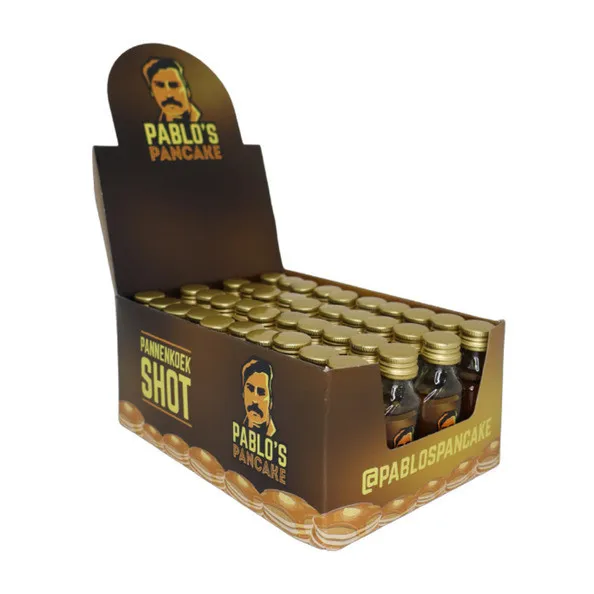 Pablo’s pancake - Een shot met een serieuze smaak. Stoer, toegankelijk en verrassend smooth. De smaak? Denk aan een pannenkoek met stroop, maar dan in een glaasje. Een echte gamechanger voor iedereen die een zoet, verfijnd shotje zoekt. #pablospancake