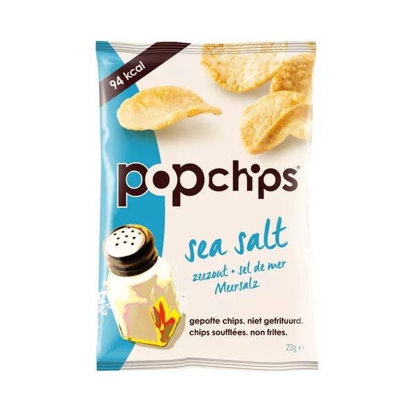 Gek op chips maar wil je toch wat verantwoorder snacken? Of wil je in plaats van chips een verantwoorde snack verkopen? Popchips zeezout is gemaakt van aardappel en rijstmail. De chips wordt gepoft in plaats van gebakken en is daardoor minder vet. Koop dus snel Popchips zeezout bij online groothandel Compliment.nl. Je koopt Popchips seasalt voordelig per doos met 21 zakjes van 23 gram.