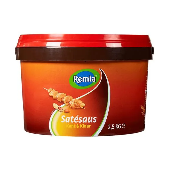 Satésaus is één van de populairste sauzen binnen de Foodservice. Remia Kant en Klare Satésaus heeft een ambachtelijke receptuur en een constante kwaliteit. Kruidig van smaak, lactosevrij, vegan en natuurlijk glutenvrij. Lekker bij kipsaté, frites enOosterse maaltijden. Deze satésaus dient alleen nog verwarmd te worden voor gebruik. Verpakt in een 2,5kg emmer.