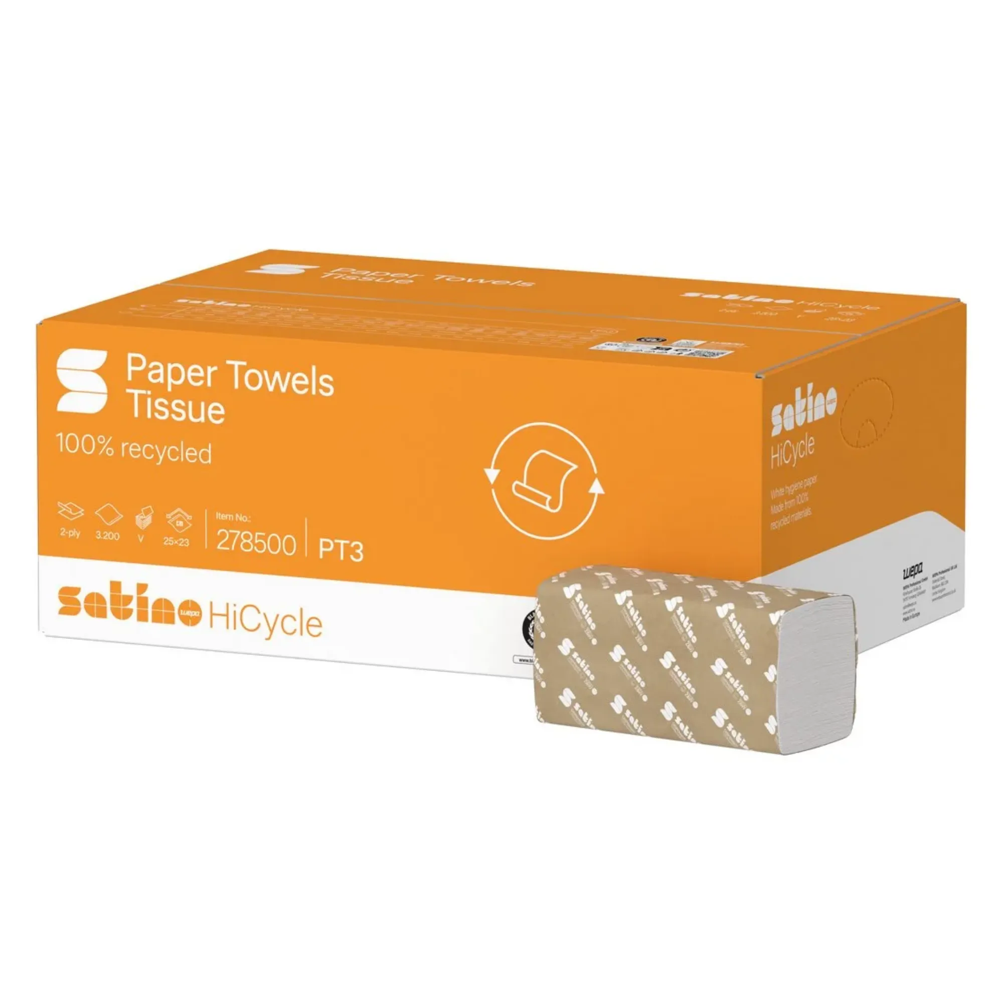 De Satino HiCycle Z-vouw handdoekjes bieden een superieure droogervaring die direct bijdraagt aan een professionele presentatie in elke sanitaire ruimte. Deze 2-laagse vellen zijn vervaardigd van 100% gerecycled papier, maar verrassen door hun helderwitte kleur en opvallende zachtheid. Dankzij de innovatieve HiCycle-technologie geniet u van een hoogwaardige kwaliteit die niet onderdoet voor nieuw papier. Of ze nu klaarliggen in de voorraadkast of direct beschikbaar zijn voor gasten en bezoekers bij de wastafel, deze handdoekjes stralen pure hygiëne uit en zorgen voor een fris gevoel op de werkvloer.