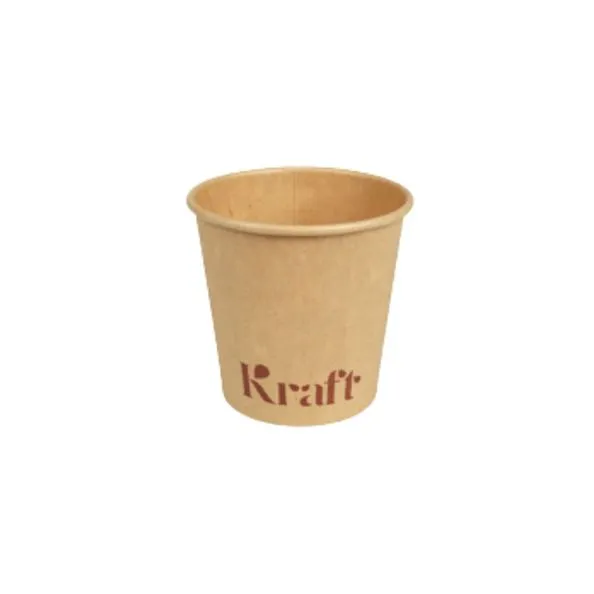 Het sausbakje is gemaakt van bruin FSC-gecertificeerd kraft karton en voorzien van een PE-coating. De inhoud is 90 ml (3 oz) en de afmeting Ø 6,1 x 5,8 cm.