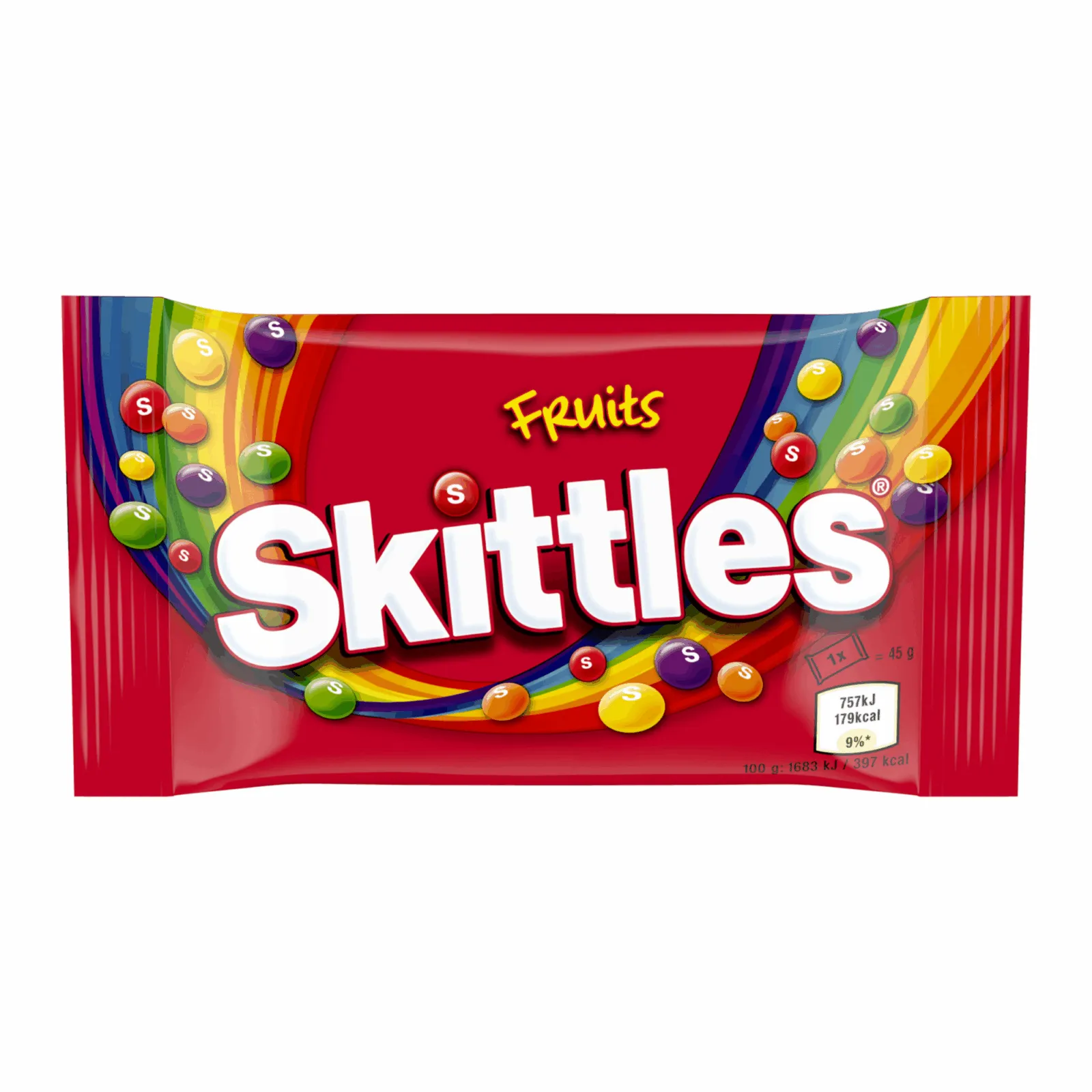 Skittles Fruits zijn snoepjes in alle kleuren van de regenboog met fruitsmaken. Verwacht met Skittles altijd het onverwachte en 'taste the rainbow'!