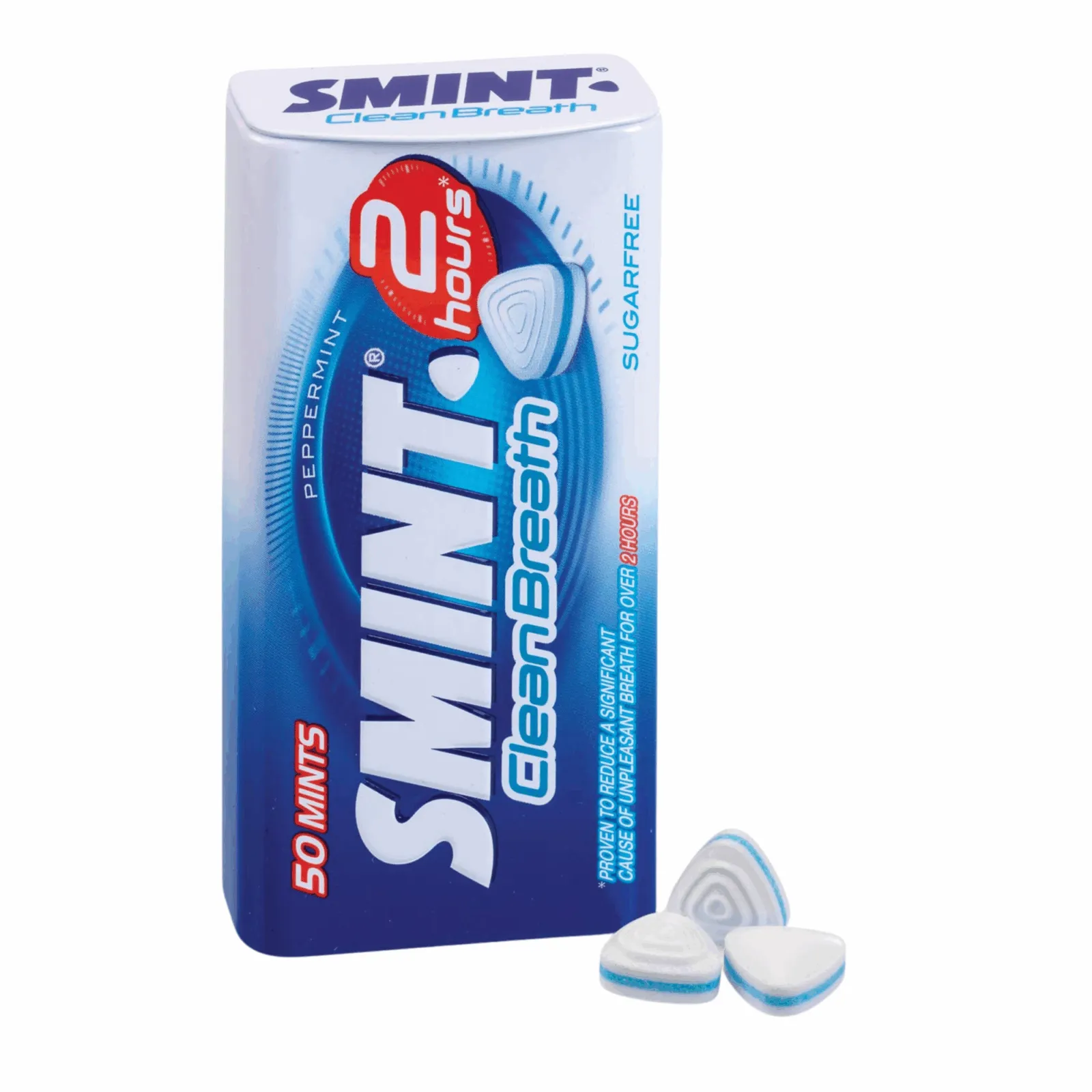 Smint 2 hours clean breath peppermint 35 gr. 12 tinnen blikjes in een doos. In een blikje zitten 50 Smintjes. Deze mintjes zijn suikervrij. Smint mintjes 2 hours clean breath zorgt 2 uren voor een frisse adem. Handig verpakt in een tinnen blikje. Ideaal voor onderweg of op kantoor.