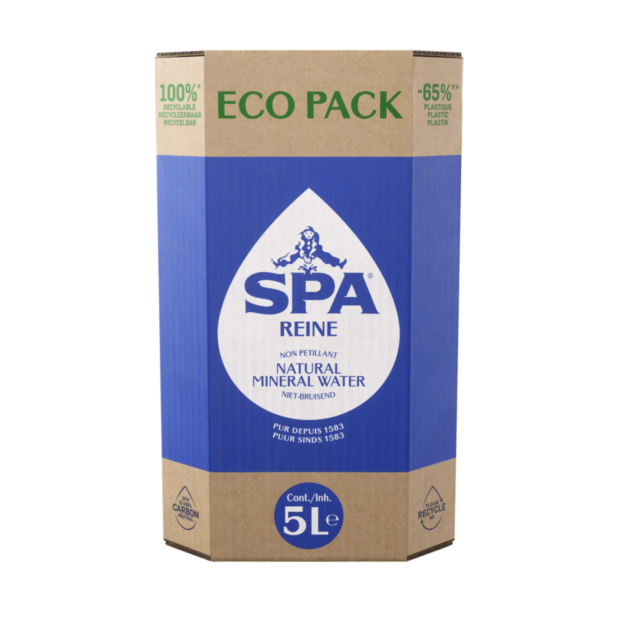 Bij Compliment.nl koop je voordelig Spa Reine Ecopack van 5 liter, het natuurzuivere mineraalwater uit het hart van de Belgische Ardennen in een praktisch en duurzaam verpakkingsformaat. Spa Reine is zeer licht gemineraliseerd en daardoor niet alleen ideaal voor dagelijks gebruik, maar ook perfect geschikt voor de bereiding van babyvoeding. Dankzij de lange natuurlijke filtering door de beschermde bodemlagen is dit water uiterst puur, zacht van smaak en laag in natrium. De handige Ecopack van 5 liter is makkelijk in gebruik en zorgt ervoor dat je altijd voldoende gezond en zuiver drinkwater in huis hebt. Bovendien is de verpakking volledig recyclebaar, waardoor je een bewuste keuze maakt voor zowel je gezondheid als het milieu. Met Spa Reine haal je de vertrouwde kwaliteit van Spa in huis, verpakt in een grootformaat dat zowel praktisch als duurzaam is.