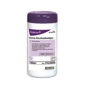 Suma Alcoholdoekjes zijn gebruiksklare vochtige doekjes geïmpregneerd met een desinfecterende oplossing. De doekjes bevatten 77% ethanol en kunnen worden gebruikt als aanvulling op bestaande procedures voor reiniging en desinfectie. Voor effectieve reiniging van kleine voorwerpen en oppervlakken die onder werkomstandigheden vaak en snel een hygiënisch resultaat vereisen zoals thermometervoelers, handgrepen, deurklinken, toiletkranen, bedieningspanelen, tiptoetsen, pincetten en tangen.
