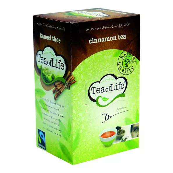 Deze thee van Tea of Life bevat echte stukjes kaneel. De thee is lekker zoet en kruidig door de toevoeging van kaneel. Vooral tijdens de koude winterdagen is deze thee erg lekker. Er zitten 80 theezakjes in een doos.