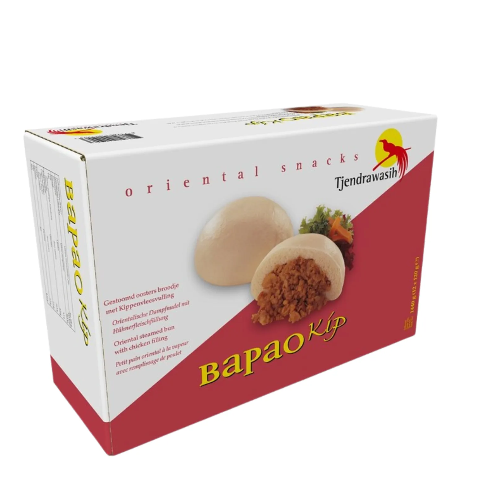 De Tjendrawasih Bapao Kippenvlees biedt een heerlijke oosterse snackervaring die perfect past bij een actieve levensstijl. Dit luchtige, gestoomde broodje is rijkelijk gevuld met malse kip in een authentieke kruidenmix. Door de voorraad van twaalf stuks heb je altijd een smakelijke oplossing in de voorraadkast liggen. Even kort opwarmen in de magnetron of stoomoven en de bapao is klaar om direct aan te bieden aan hongerige gasten en bezoekers.