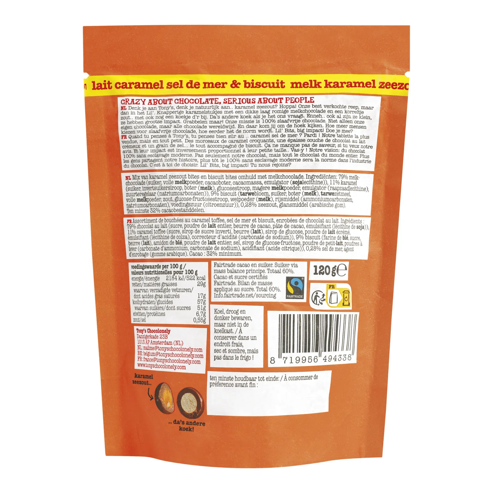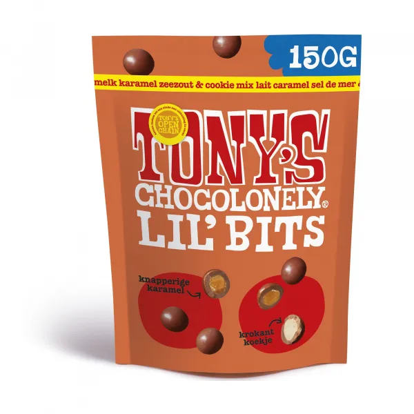 Tony’s Chocolonely Lil’ Bits Melk Karamel Zeezout & Cookie (8x 150gr)